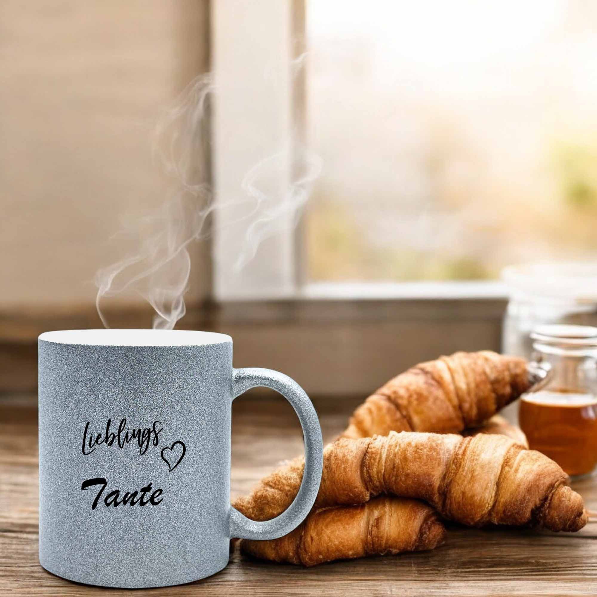 Hochwertige Glitzer Tasse aus Keramik Lieblings Tante