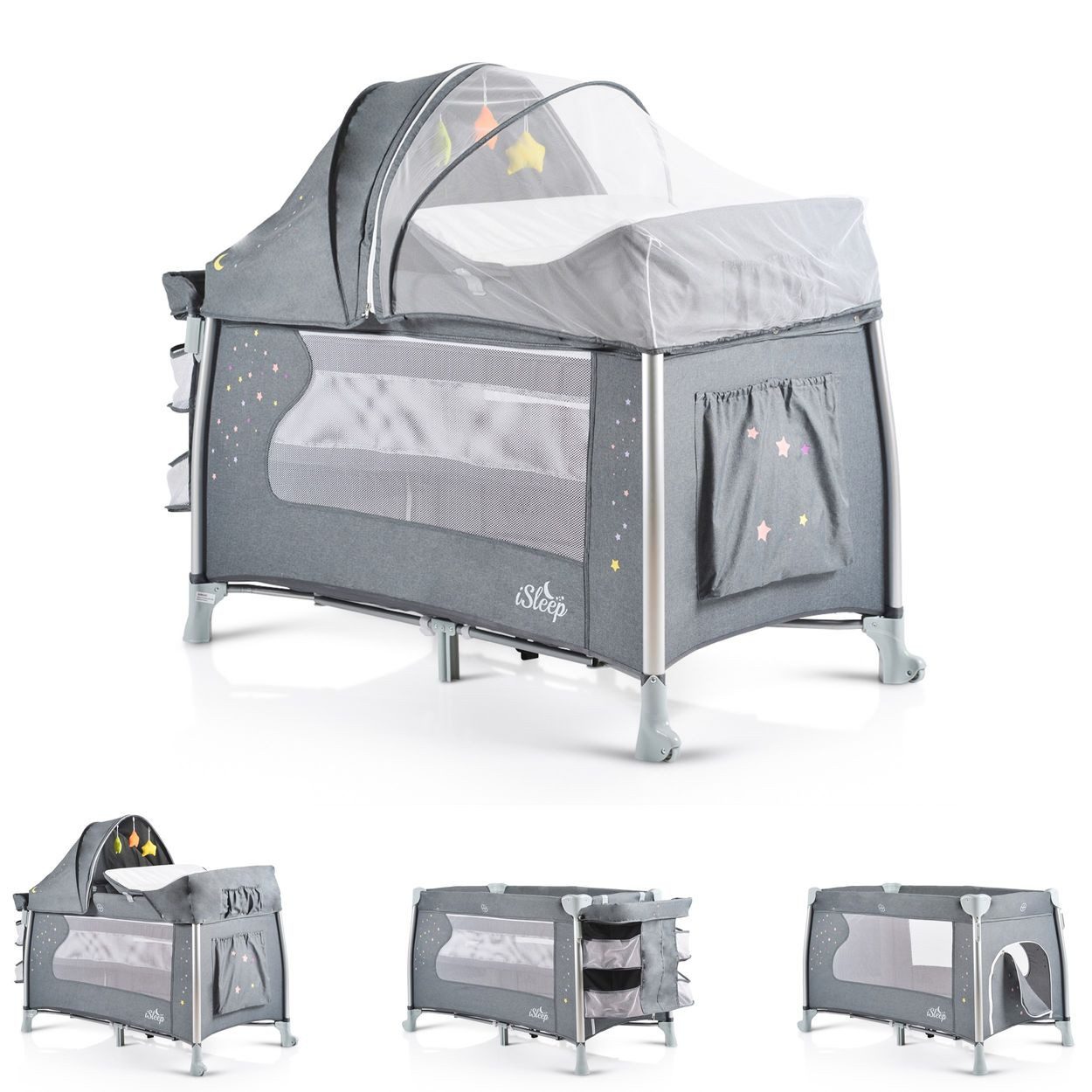 Впередe Informationen Перейти в товар Cangaroo Reisebett iSleep Wiege Matratze Spielbogen Wickelauflage Moskitonetz: