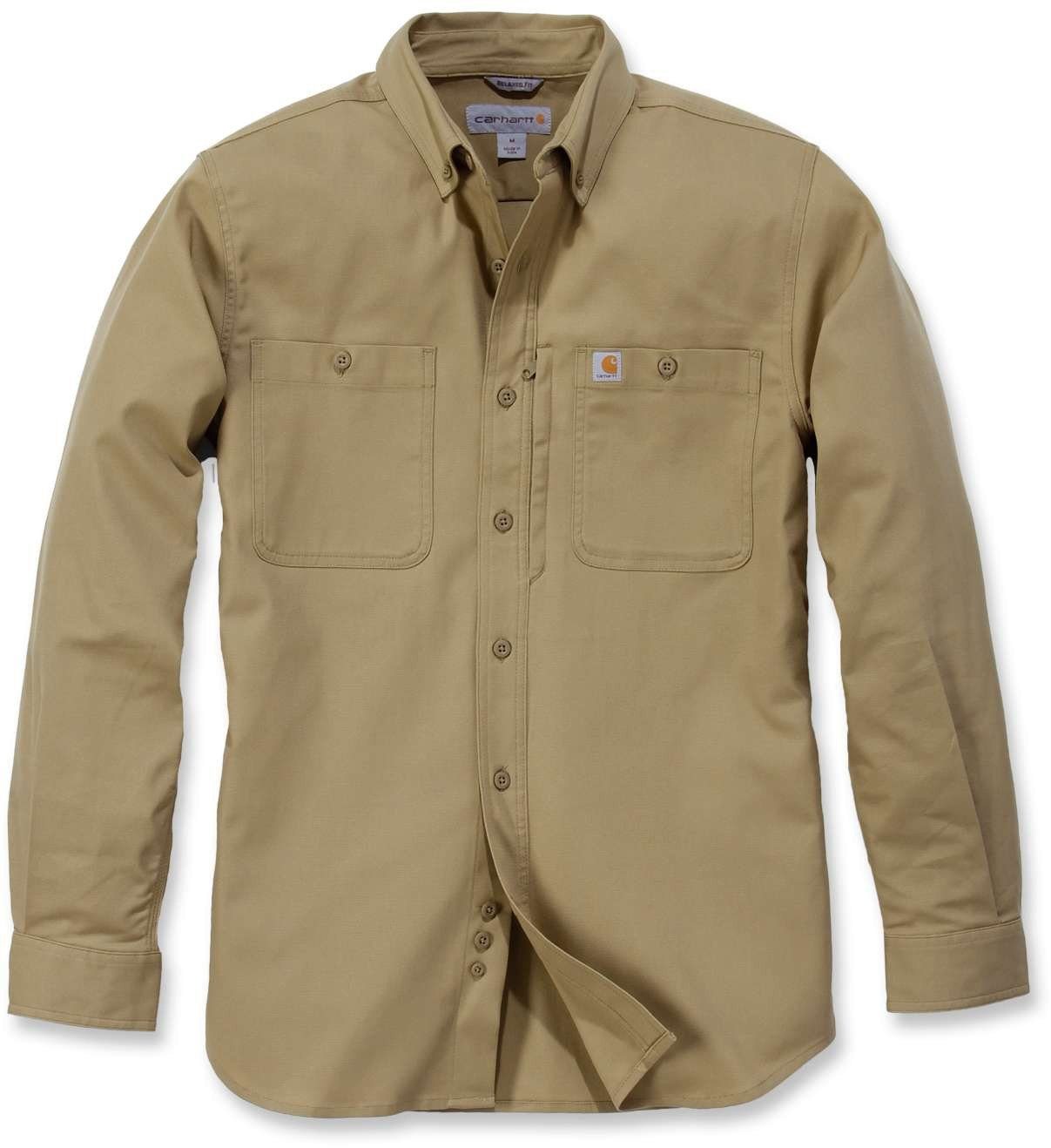 5 oz/yd² / 170 g/m², 58% Baumwolle / 39% Polyester / 3% Elastan · Strapazierfähiges Stretch mit Rugged-Flex®-Technologie für mehr Bewegungsfreiheit · Stain-Breaker®-Technologie löst Flecken in der Wäsche · Einfache Pflege, da knitterfrei · Farbecht für professionelles Aussehen, Wäsche für Wäsche · Knopfkragen · Zwei Brusttaschen mit Knopfverschlüssen · Karten-Brusttasche links mit Reißverschluss · Verstellbare Bündchen mit zwei Knöpfen · Dreifach vernähte Hauptnähte