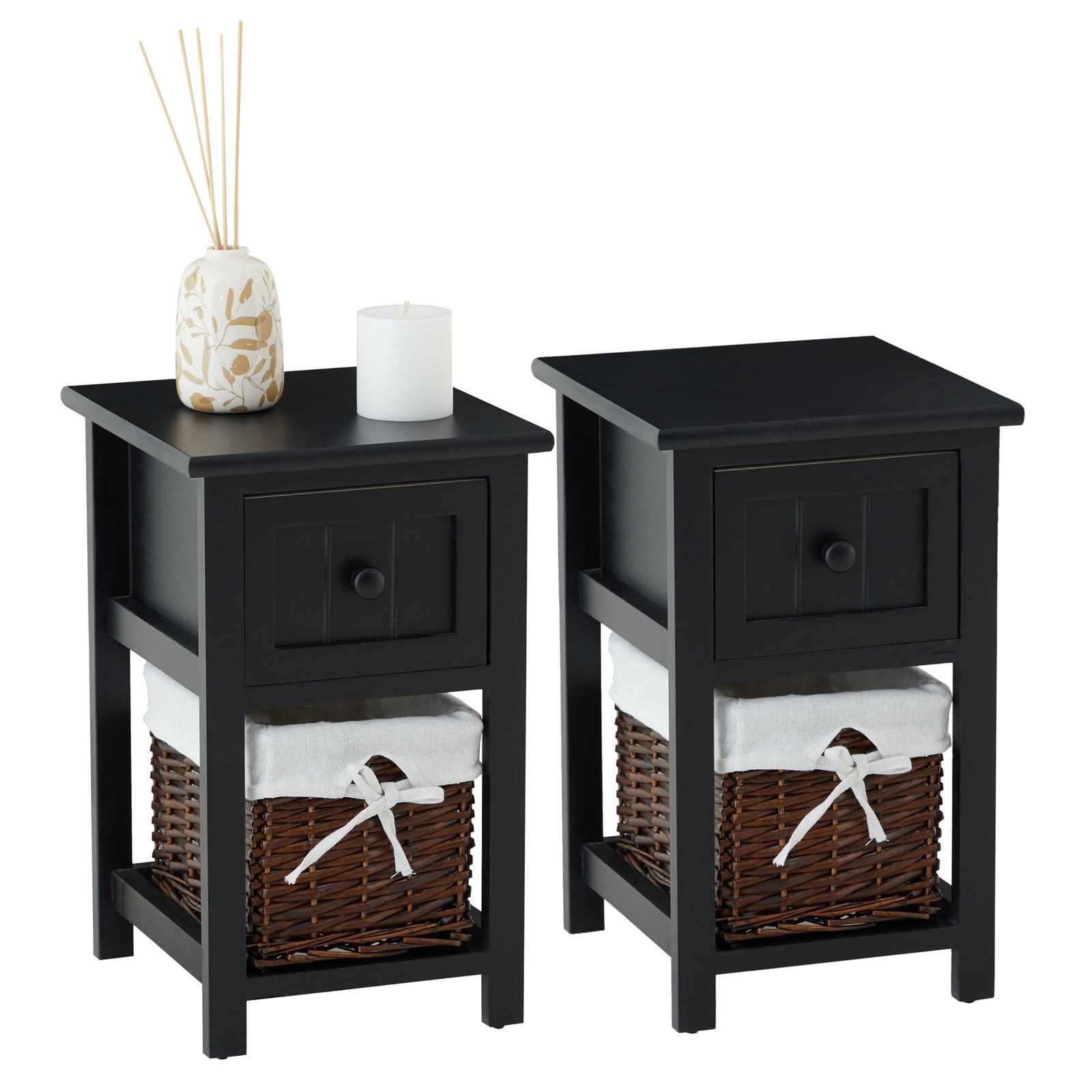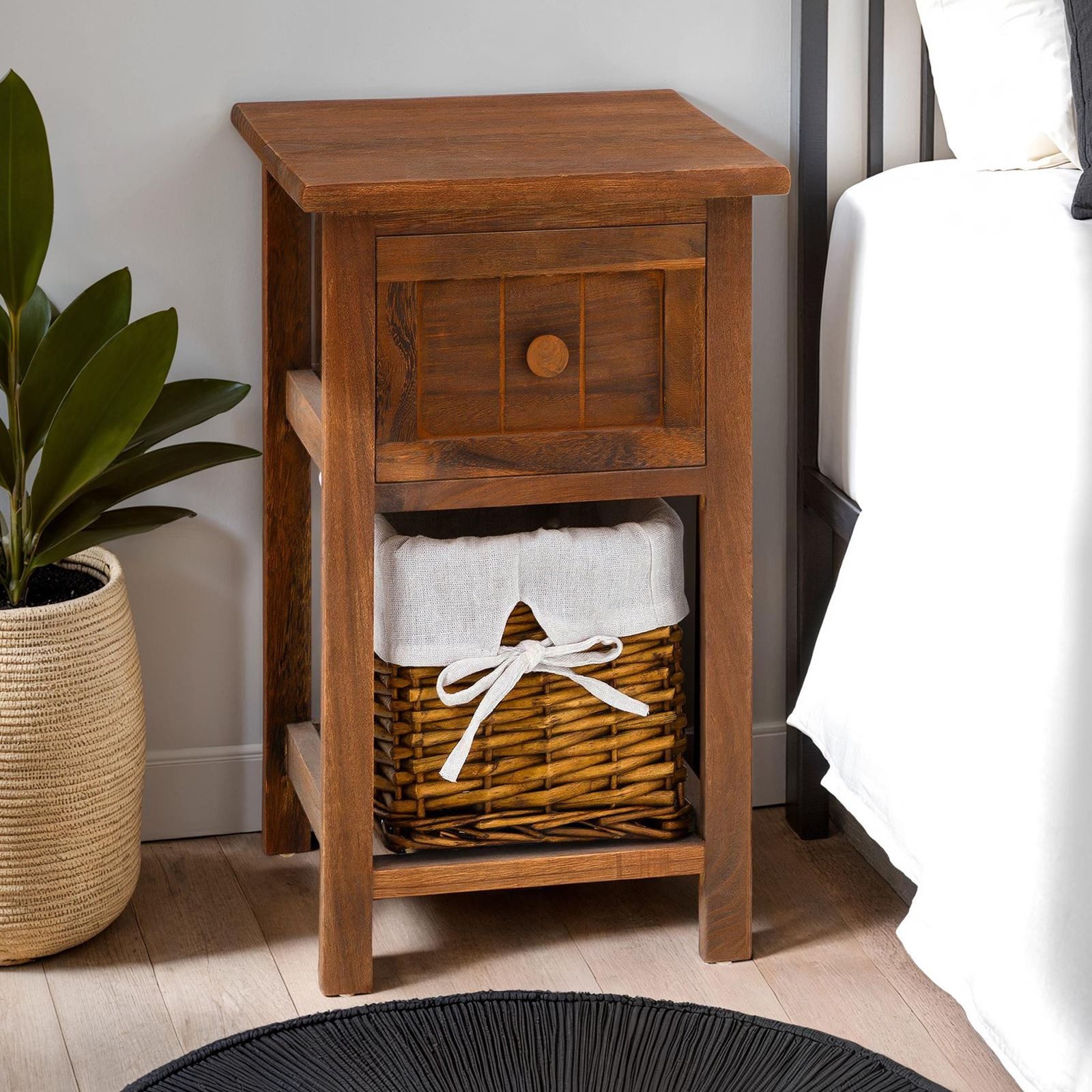 Der Messina bietet als elegantes 2er Set in dunkelbraunem Lack eine stilvolle Ergänzung für jedes Schlafzimmer. Jeder Nachtschrank vereint eine praktische Schublade mit einem charmanten Korb aus braunem Korbgeflecht, inklusive einem herausnehmbaren weißen Stoffeinsatz. Gefertigt aus umweltfreundlichem Paulownia-Holz und behandelt mit einem schadstoffarmen Lack, verspricht dieses Möbelstück Langlebigkeit und Stil. Ein perfekter Begleiter für Ihr Boxspringbett oder als bezaubernder Beistelltisch.