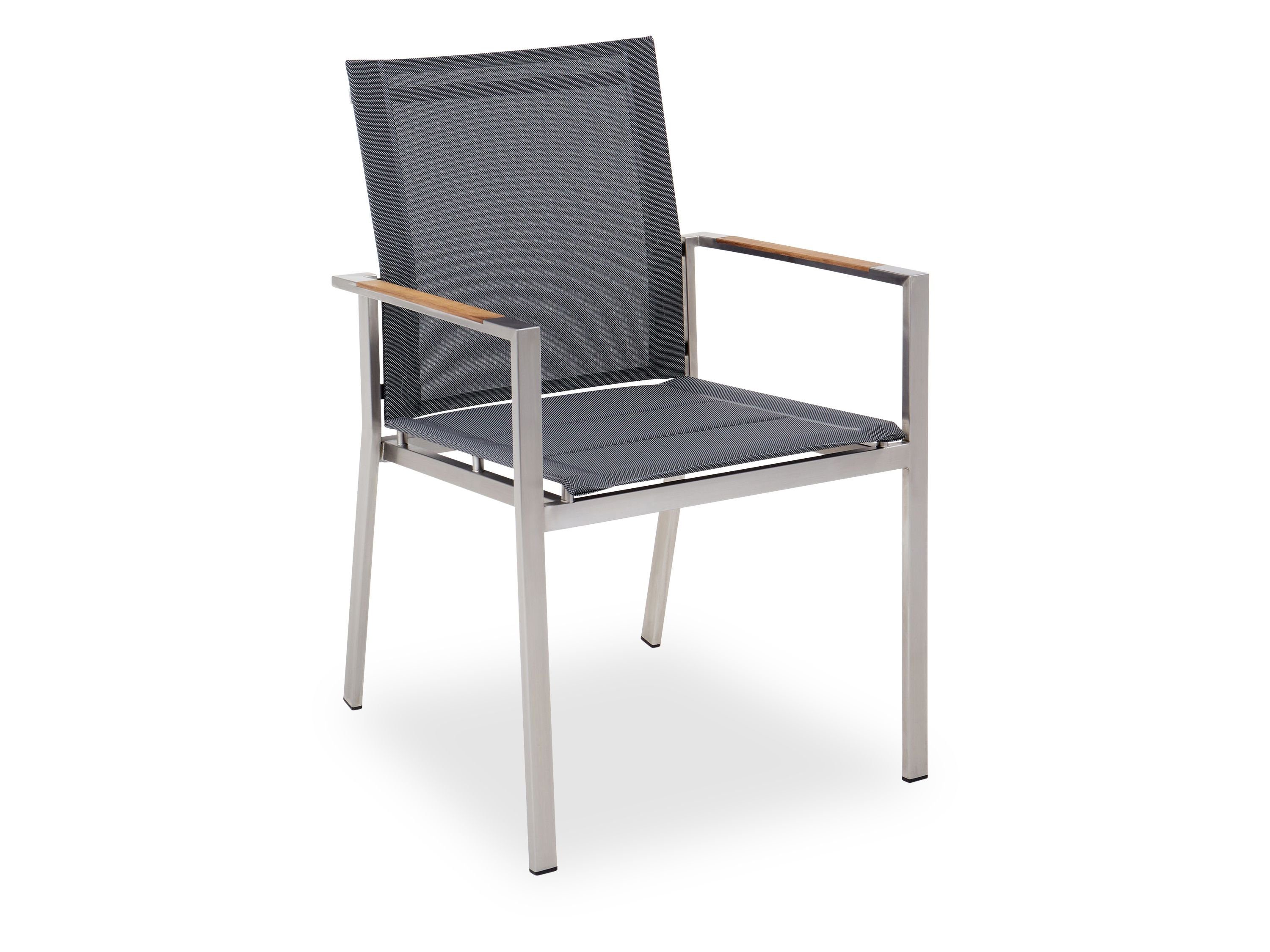 · Armlehnen in Teakholz · Gestell Edelstahl gebürstet · Bezug: Textilene anthrazit · TKZ gem. Herstellerangabe · Maße: 56x85x60cm Auf den Sommer sind Sie mit diesem Gartenstuhl hervorragend vorbereitet. Der Stuhl macht in seinem modernen Stil eine ausgezeichnete Figur. Die farbliche Gestaltung hat einen Charakter, der mit verschiedensten Außeneinrichtungen kombiniert werden kann. Dank seiner ästhetischen Optik ist der Outdoor-Begleiter nicht nur ein funktionales, sondern zugleich ein sehr dekoratives Möbelstück für den Outdoorbereich. Der graue Stuhl punktet mit der Qualität des verwendeten Stoffs. Der Marken-Stuhl von casa NOVA bietet eine ebenso praktische wie hübsche Sitzgelegenheit für Ihr Exterieur und lässt wirklich keine Wünsche unerfüllt. Er weist eine Gesamtbreite von 56 cm, eine Höhe von 85 cm und eine Tiefe von 60 cm auf. Dieser Stuhl ist eine optimale Ergänzung, um den Sommer zu genießen.