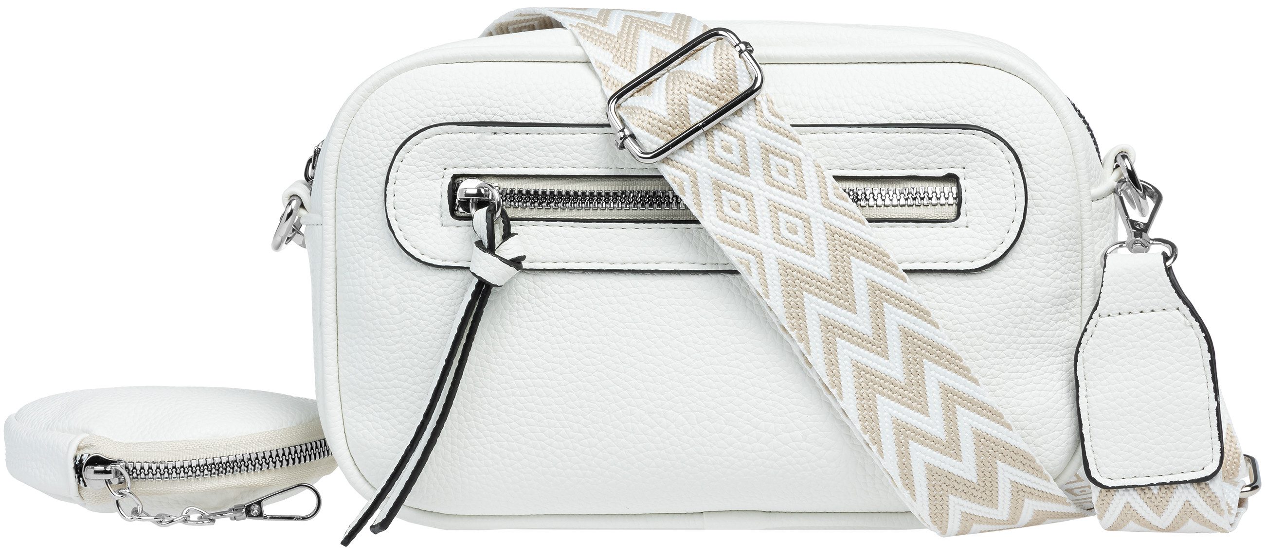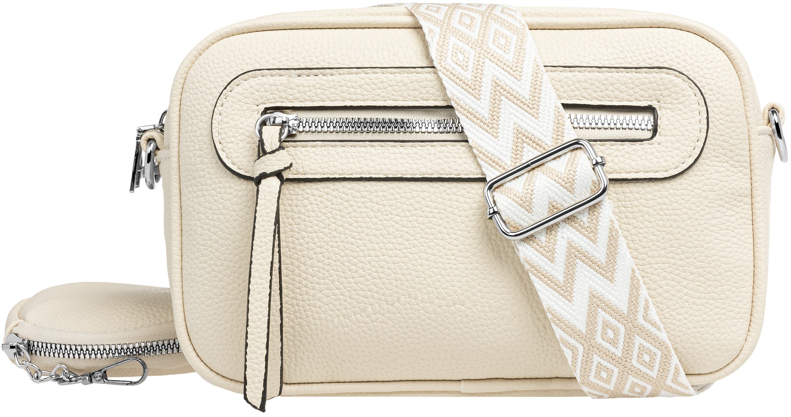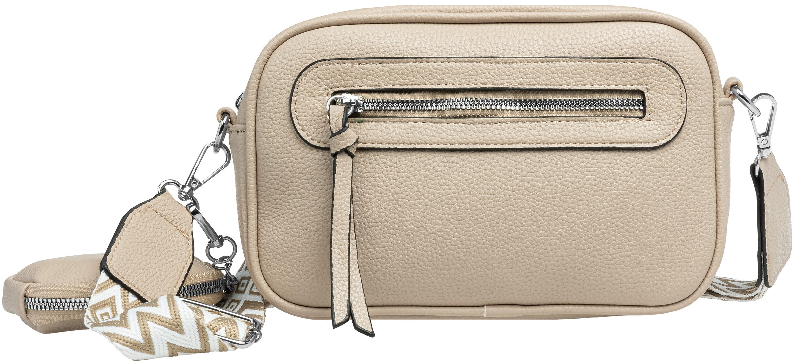 Dank des verstellbaren Textiltragegurts (maximale Довжина: 80 cm / Breite 38mm) mit silberfarbener Metallschnalle kannst Du die Tasche flexibel tragen: klassisch um die Hüfte, lässig über der Schulter oder als Crossbody Bag.
