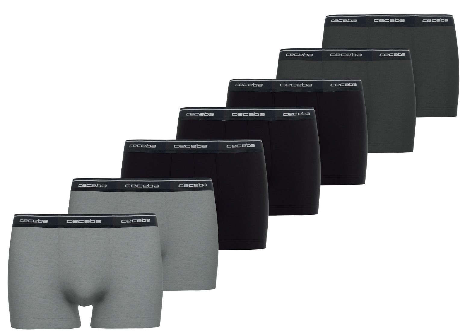 Der 7er-Pack Ceceba Herren Pants Boxershorts besteht aus einer hochwertigen Materialmischung von 95% Baumwolle und 5% Elastan, die Komfort, Flexibilität und Atmungsaktivität bietet. Durch den hohen Baumwollanteil sind die Boxershorts angenehm weich auf der Haut und gewährleisten eine gute Luftzirkulation, was den Tragekomfort im Alltag erhöht. Der Elastananteil sorgt für eine optimale Passform und Bewegungsfreiheit, da das Material dehnbar ist und sich dem Körper gut anpasst, ohne einzuengen. Die Pants sind im klassischen Schnitt gehalten und bieten durch ihren enganliegenden, aber bequemen Sitz eine moderne Silhouette. Der elastische Bund sorgt für zusätzlichen Halt und einen angenehmen Sitz, ohne zu drücken. Diese Boxershorts eignen sich ideal für den täglichen Gebrauch, ob im Beruf, in der Freizeit oder beim Sport. Dank der Kombination aus Baumwolle und Elastan bleiben die Pants formbeständig, auch nach häufigem Waschen, und behalten ihren angenehmen Tragekomfort bei. Das Set umfasst sieben Boxershorts die eine ideale Ergänzung für die tägliche Wäsche sind und für Abwechslung in der Garderobe sorgen.