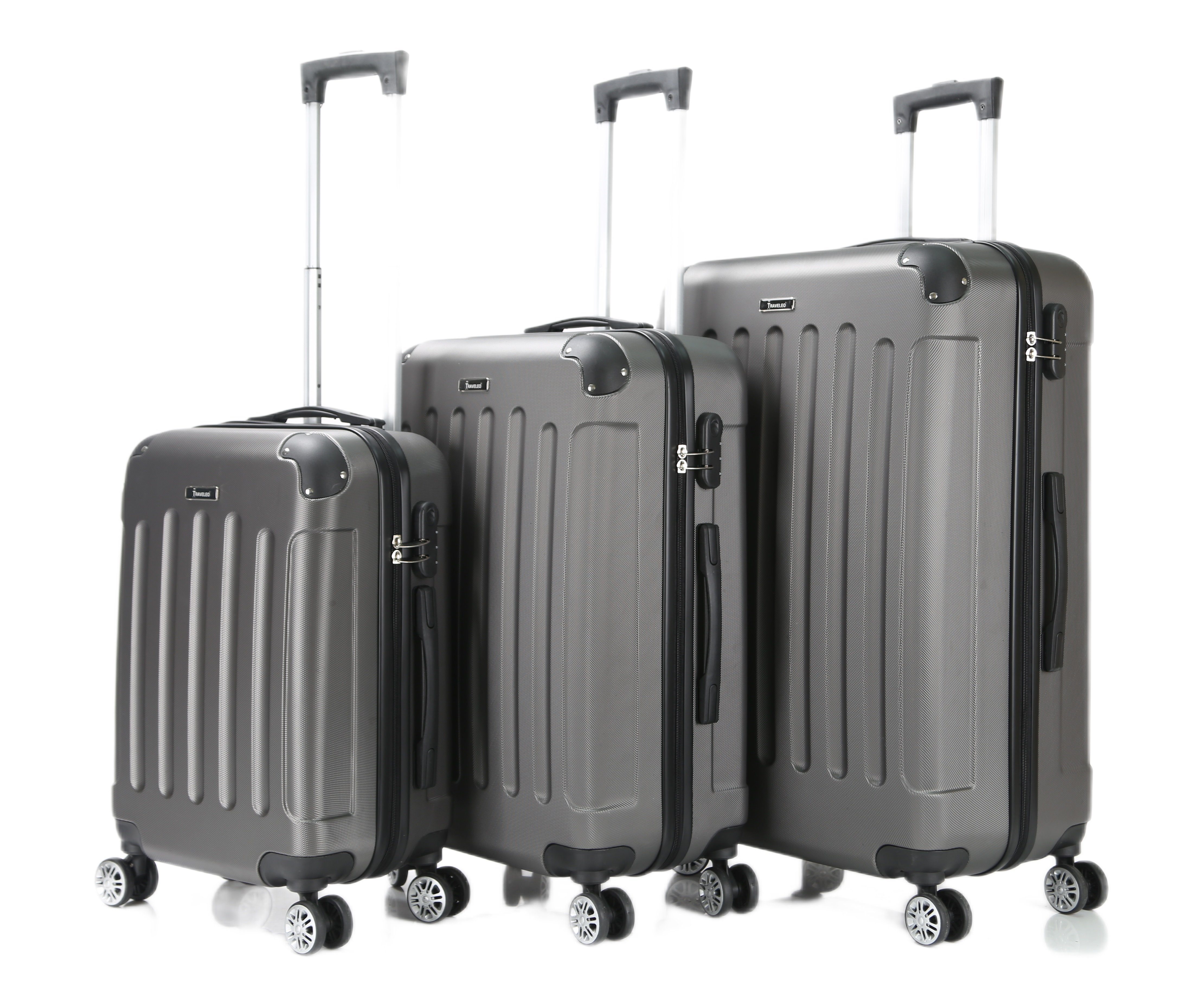 Jeder Koffer ist mit 4 Doppelrollen ausgestatte, welche sich 360° drehen können, das manövrieren ist damit sehr leicht und einfach und vor allem sehr leise.