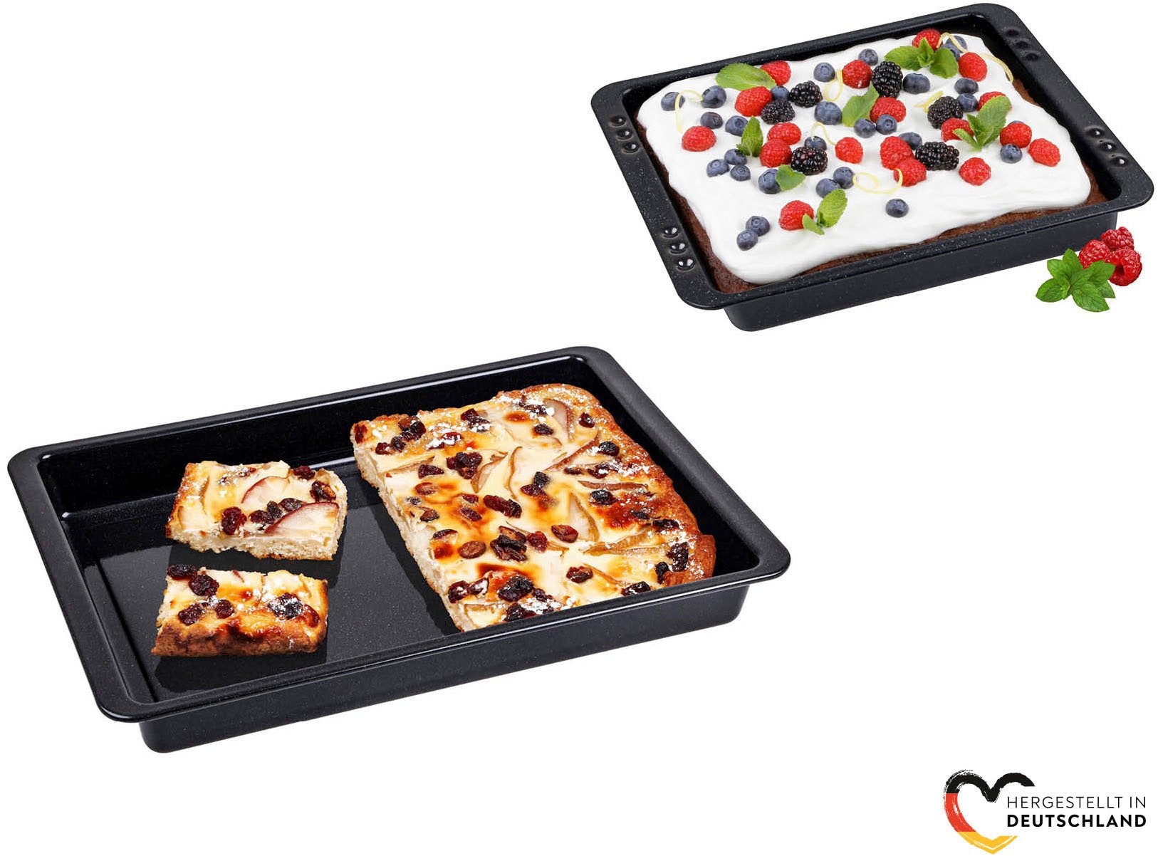 1x Backblech "Emaille", ca. 42,0 x 29,0 x 4,0 cm 1x kleine Ofenform "Emaille", ca. 28,5 x 23,0 x 4,0 cm