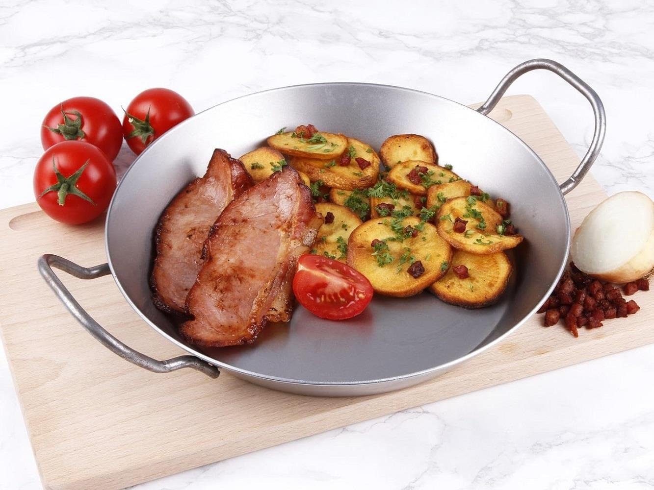 Erlebe die Qualität und Vielseitigkeit der Eisenpfanne mit 2 Griffen "geschützt" und bestelle sie noch heute. Perfekt für die Zubereitung von Fleisch, Gemüse, Pfannengerichten und vielem mehr.