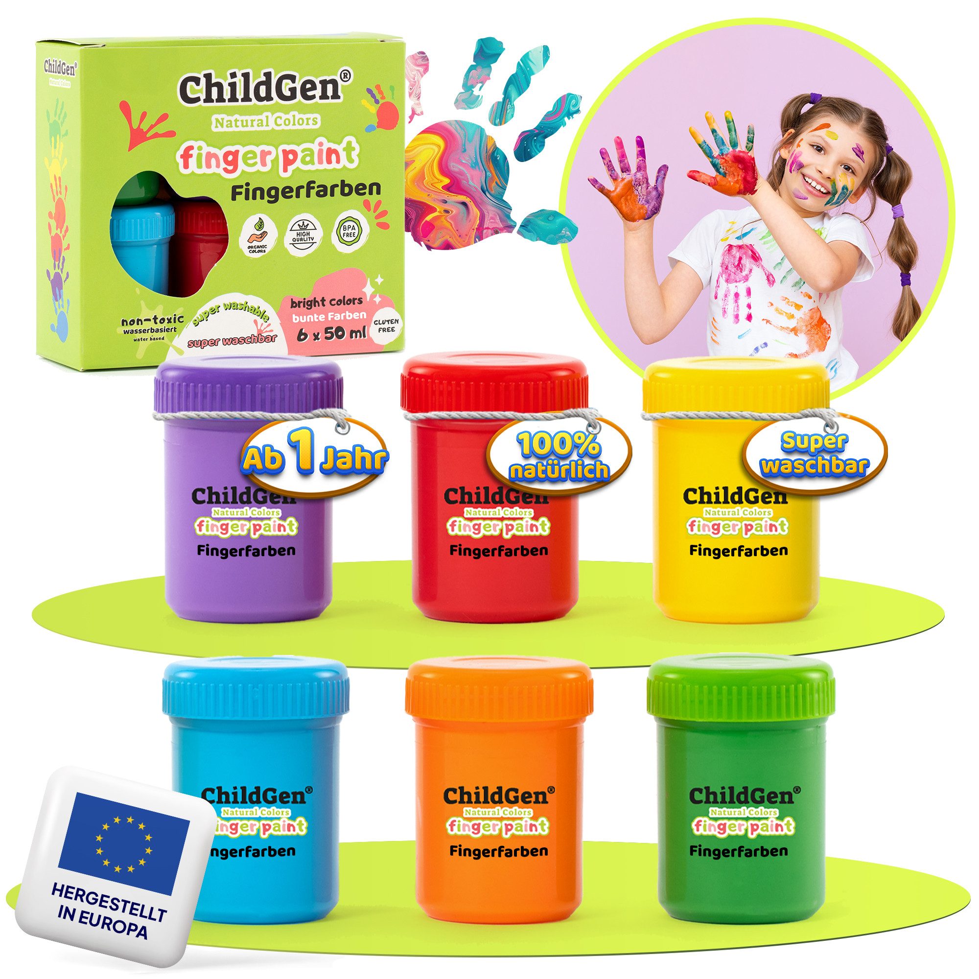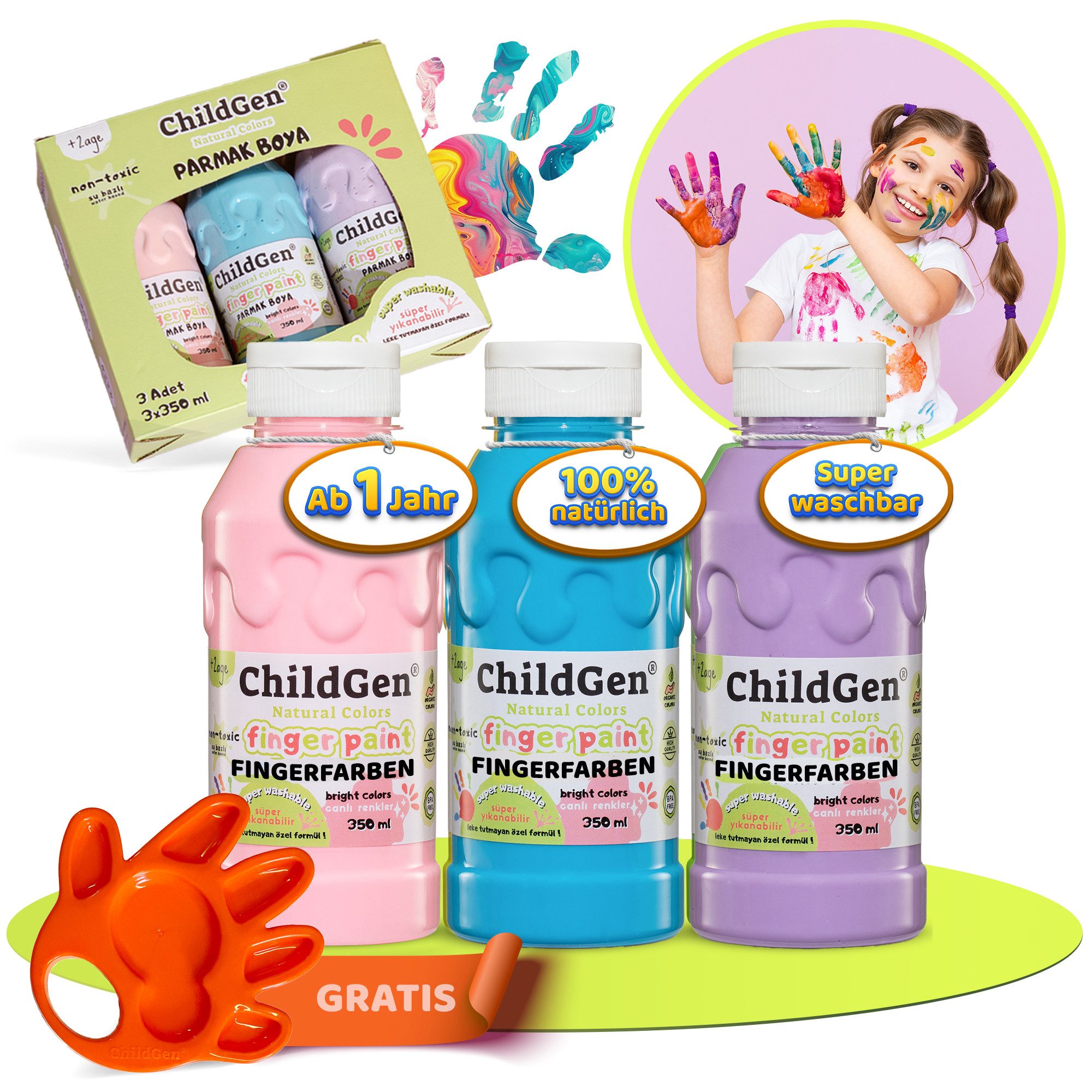 Die Farben sind wunderschön kräftig und leuchtend. Sie laden gleich zum Spielen ein. Всіs lies sich problemlos reinigen und die Farbe leicht entfernen. Perfekt für die Kleinsten aber auch für große Kinder. Besonders toll, dass alles ungiftig ist!