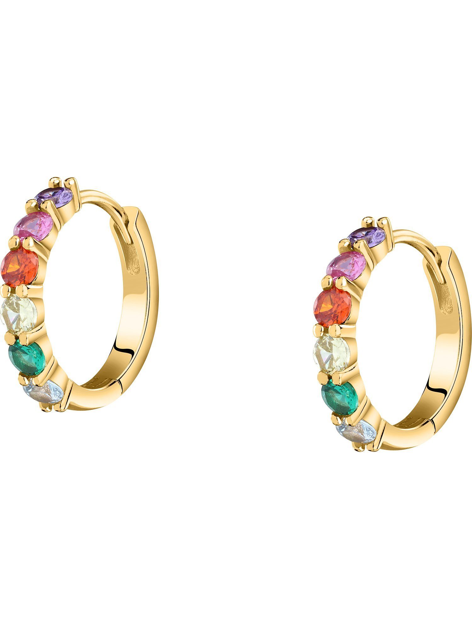 Vergoldetes 925er Silber und bunte Zirkonia-Steine - ein "perfect match" für deine Ohren! Die Creolen von CHRIST bringen zusammen, was zusammengehört. Auf einer goldenen Basis sitzen verschiedenfarbige Steine in Krappenfassungen, so dass der goldene Glanz und das feurige Funkeln ideal harmonieren. Ein praktischer Klappverschluss sorgt für leichtes Anlegen und sicheren Halt. CHRIST Silber bietet stylishe Trend-Pieces für jeden Tag, produziert aus 100 % recyceltem Silber.