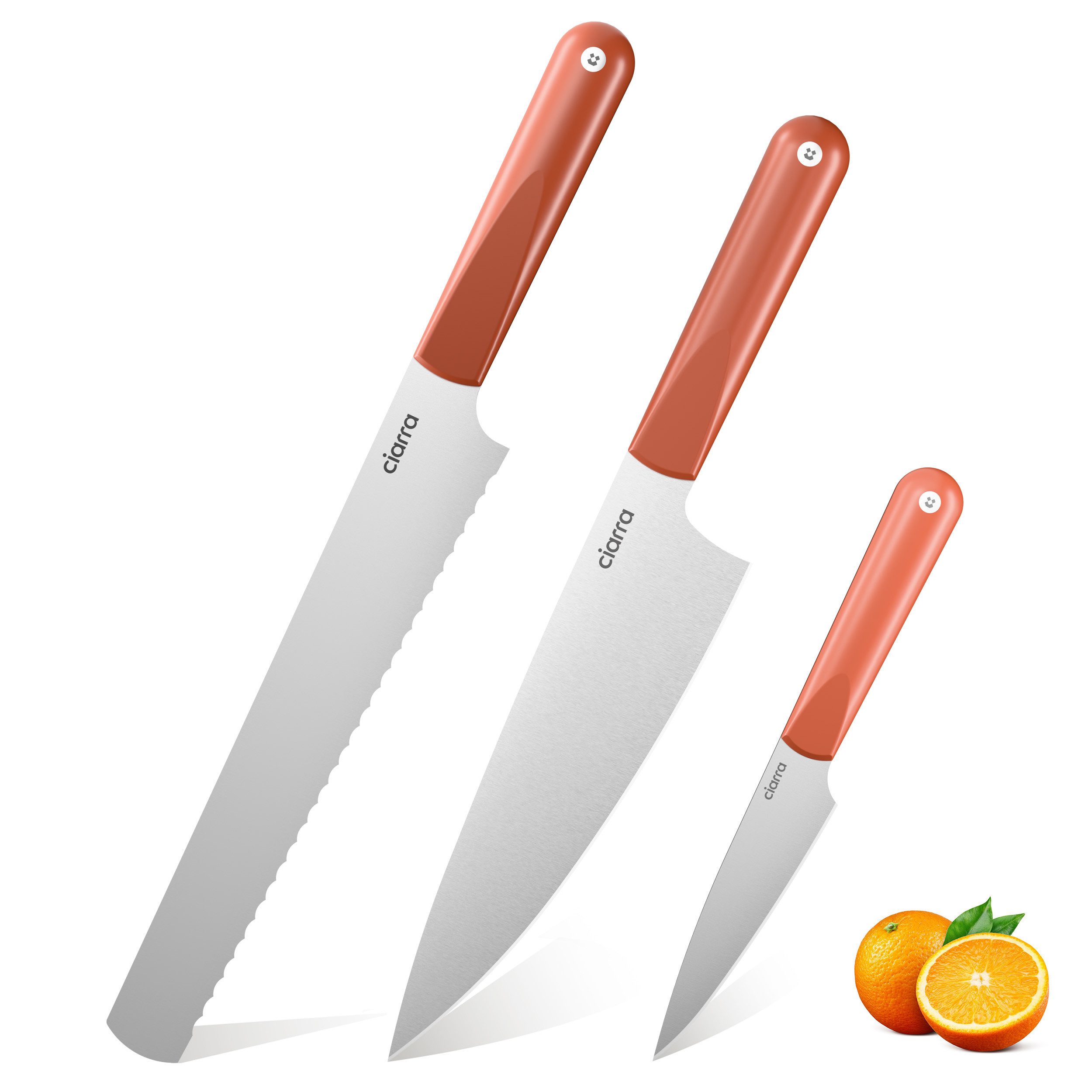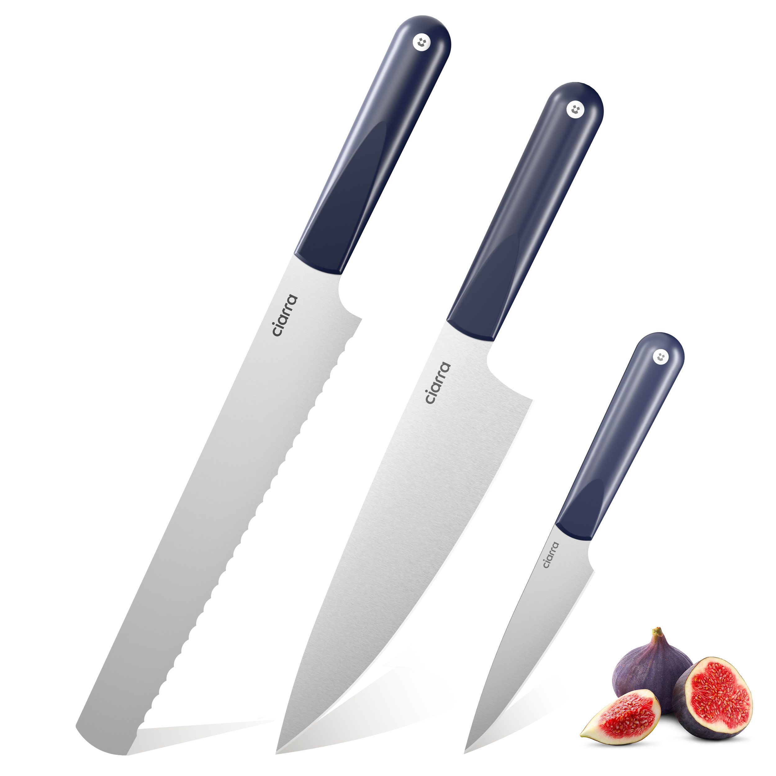 Lieferumfang | 1x Chefmesser 1x Brotmesser 1x Allzweckmesser 3x Schutzkappe 3x PVC Messerschutz 1x Karton |