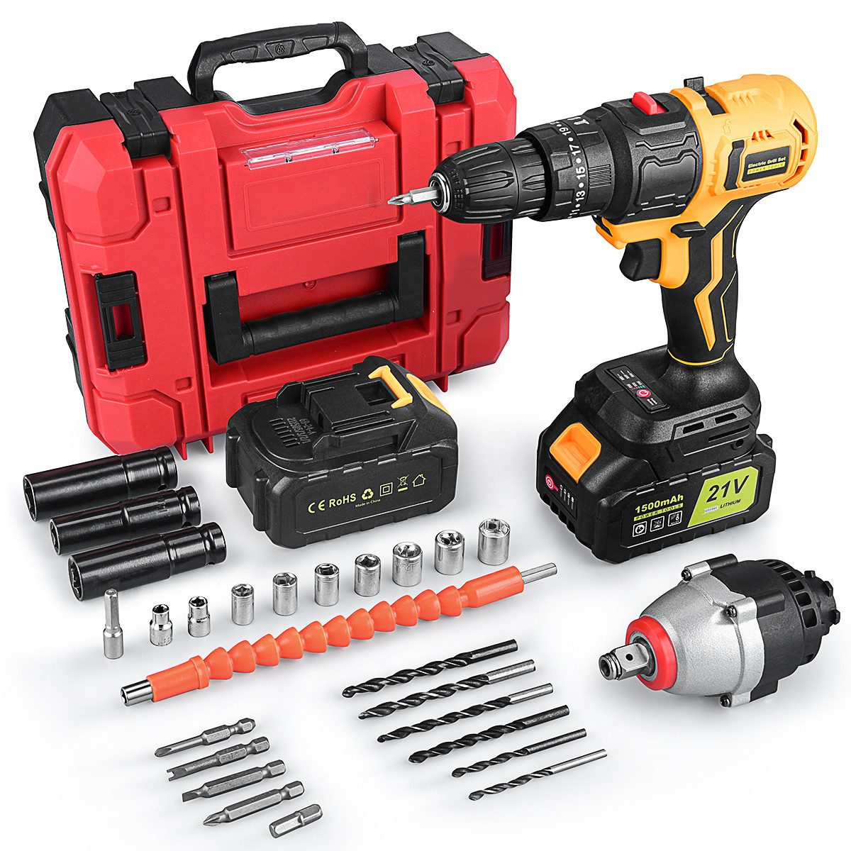 Lieferumfang | Akku-Bohrschrauber Elektrischer Bohrer Batterie*2 Ladegerät*1 Steckschlüssel*9 Spiralbohrer*6 Drehmomentaufsätze*3 Schraubendreher-Bohrer*6 Befestigungsstücke*1 Sechskantschraubendreherhalter*1 flexibler Bohrschaft*1 Aufbewahrungsbox Bedienungsanleitung |