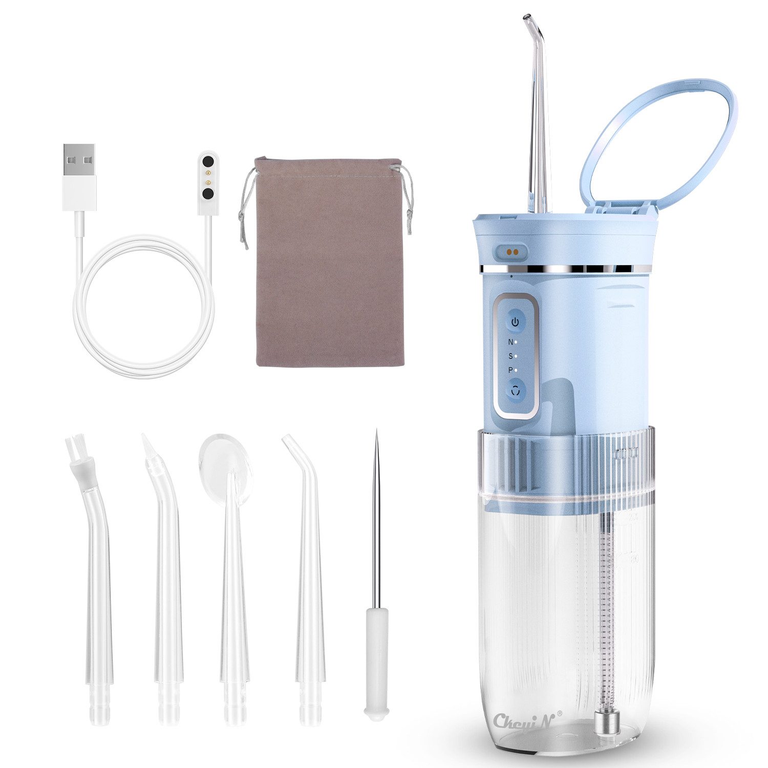 Lieferumfang | Düse*4 Ladekabel*1 Samtbeutel*1 Zahnstocher*1 Bedienungsanleitung |