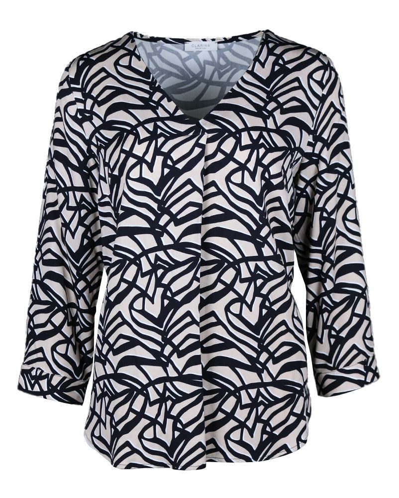 Die Clarina Bluse vereint Stil und Komfort perfekt. Mit V-Ausschnitt, 3/4-Arm und einem Allover Muster ist sie ein zeitloses Must-Have. Hergestellt aus 100% Viskose bietet sie angenehmen Tragekomfort. Vielseitig kombinierbar, passt sie sowohl ins Büro als auch in die Freizeit. Setzen Sie auf zeitlose Eleganz mit der Clarina Bluse!