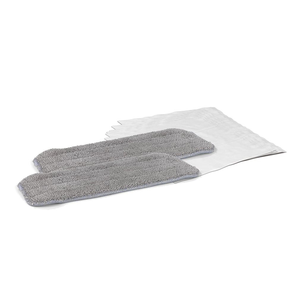 Das Set besteht aus insgesamt 12 CLEANmaxx Wischtüchern für den CLEANmaxx Spray-Mopp 4in1 mit 350ml Tank. Es besteht aus 10 antistatischen Tüchern und 2 Mikrofasertüchern. So haben Sie jederzeit ein sauberes Wischtuch einsatzbereit und können problemlos zwischen der Reinigung der Fußböden und dem Fensterputzen ein neues, sauberes Wischtuch aufziehen.