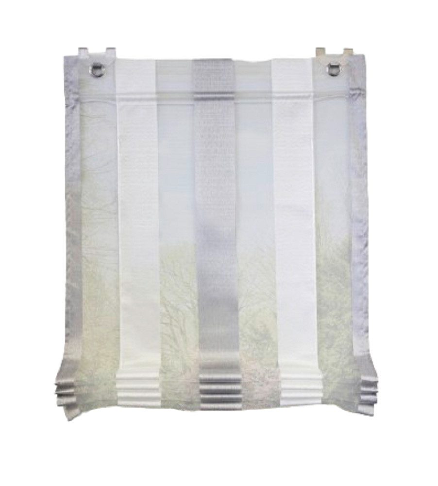 Das Bändchenraffrollo aus halbtransparentem Organza mit blickdichten Block-Längsstreifen. Das Rollo ist halbtransparent, sodass es tagsüber für einen angenehmen Lichteinfall sorgt. Mit der Stoppertechnologie kann das Rollo problemlos auf Ihrer Wunschhöhe fixiert werden. Die Montage ganz einfach ohne Bohren mit den mitgelieferten Haken direkt an Ihrem Fensterrahmen.