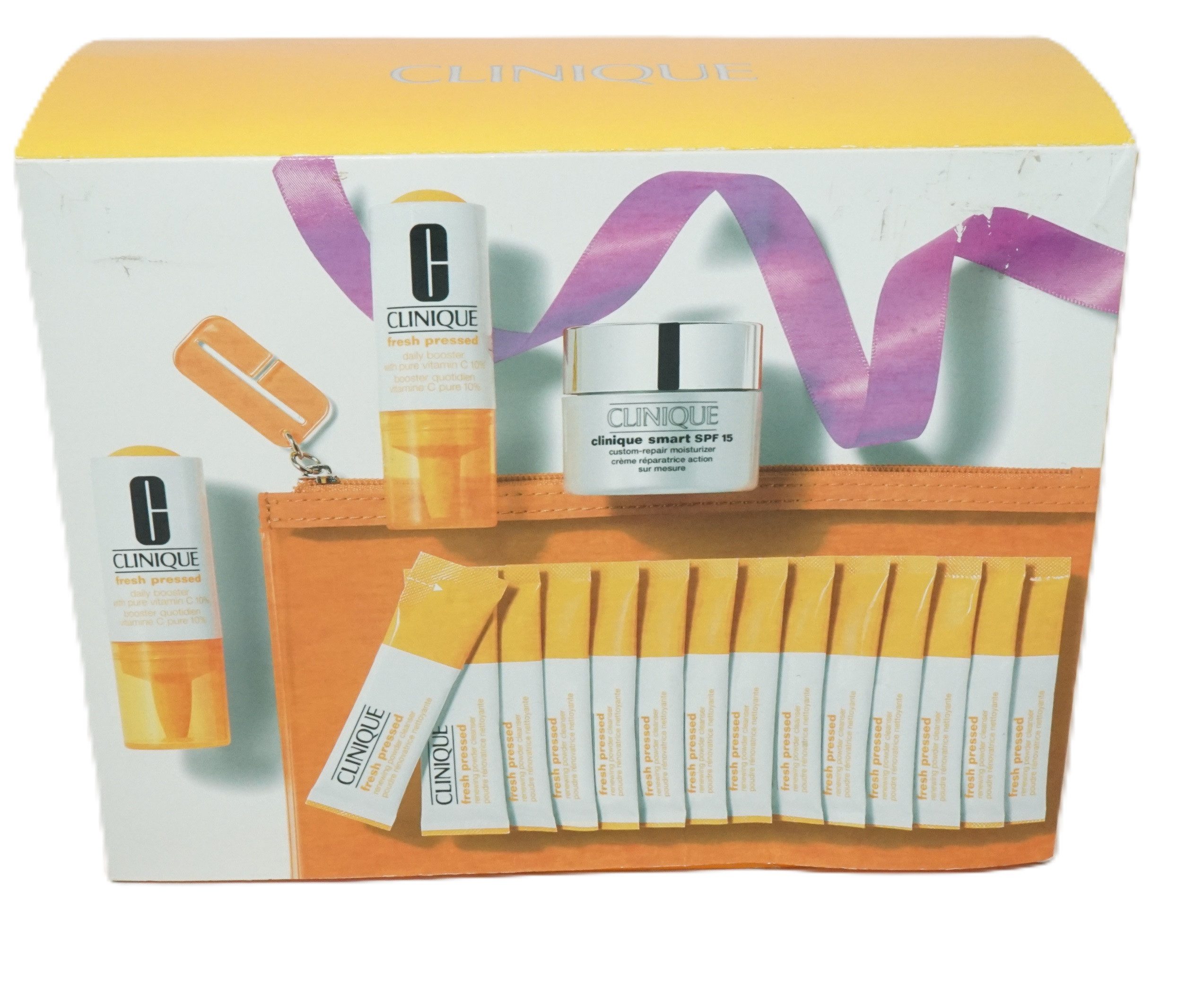 Das Clinique Smart Custom-Repair Set bietet eine komplette Pflegeroutine mit Feuchtigkeitspflege, Vitamin-Booster und Reinigungspuder Die Formeln sind auf eine strahlende, hydratisierte Haut ausgelegt Perfekt für alle Hauttypen die eine effektive Hautpflege in einem praktischen Set suchen