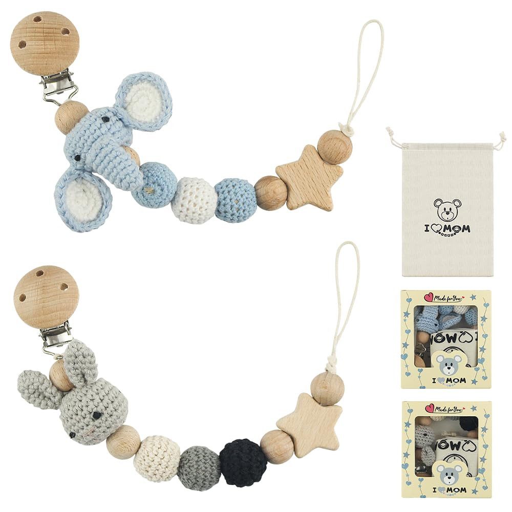 Premium-QualitätCLTYQ exklusives Design von Schnullerclip ist aus hochwertigen Materialien hergestellt! Die hochwertigen Holzklammern sind haltbarer als Kunststoff-Clips, halten sicher fest an der Kleidung und unterstützen leicht das Gewicht der Bewegungen eines Babys. Der Kunststoffeinsatz beschädigt weder Kleidung noch Haut des Babys.