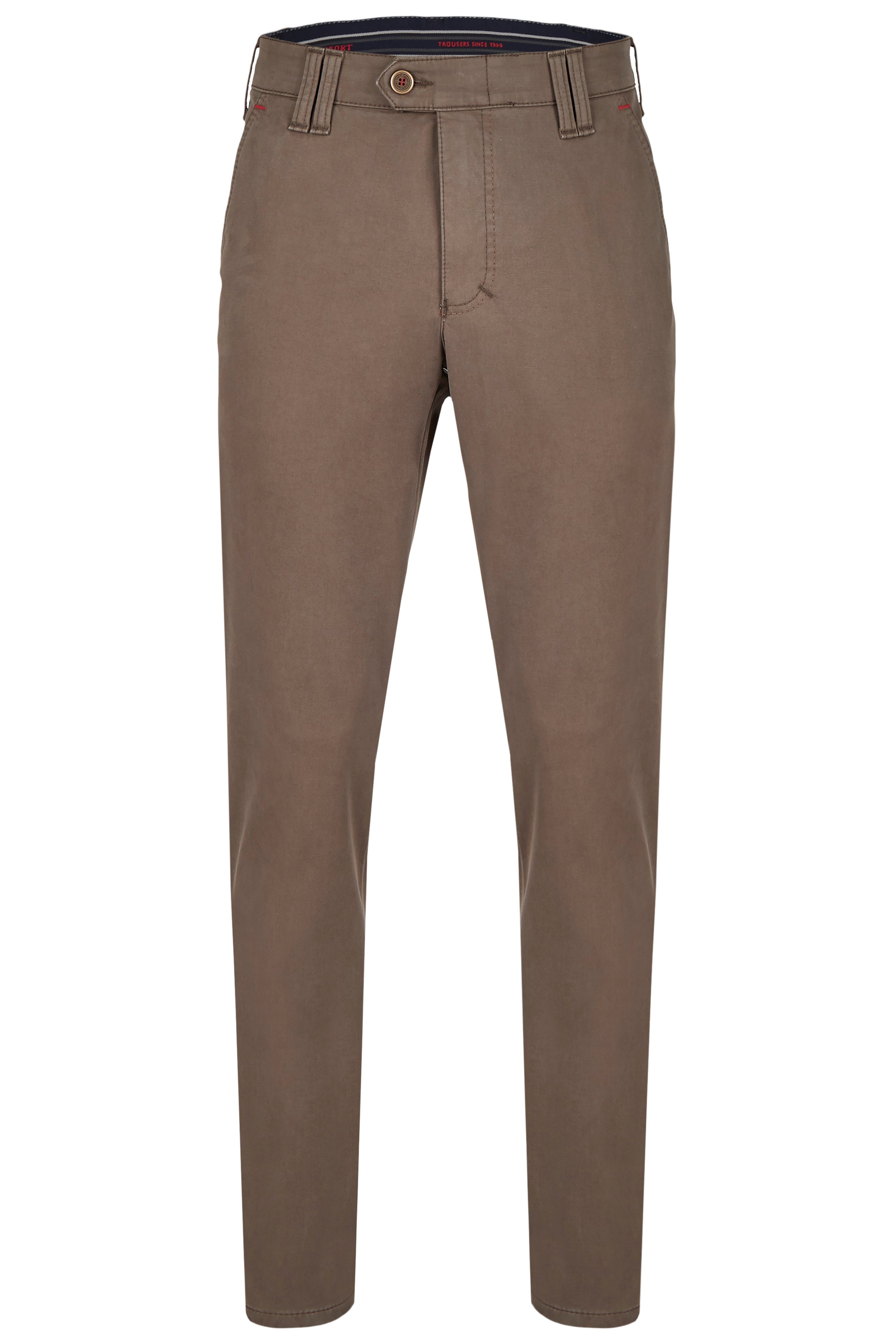 Bequeme Flat Front-Hose mit elastischem Komfortbund und Hemdstopper. Dazu die praktische Bundverlängerung mit Knopf und Haken. Gerfertigt aus einer High Stretch-Baumwolle mit Thermolite-Wärmeisolierung. Hier wird ein High-Tech-Gewebe aus THERMOLITE® Micro-Fasern direkt auf die Geweberückseite bondiert, das aus Hohlfasern besteht, in dem warme Luft gespeichert und bei Bedarf wieder abgegeben wird. Gewicht: 500 g/lfm Es handelt sich um das Nachfolgemodell der Carno 6826. Das Modell bietet eine normale Leibhöhe und wegen der schmaleren Fußweite einen schlankeren Beinverlauf