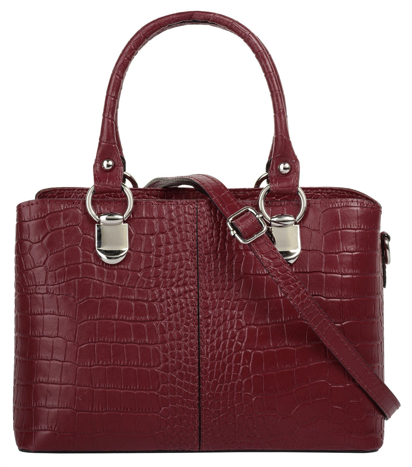 Hochwertig verarbeitet-aber leider ist das Rot zu knallig:deshalb wirkt die Tasche ´billig´!Habe die Tasche mittlerweile in schwarz,braun und blau:da merkt man,dass das Leder echt ist-nicht beschichtet.Und der Ledergeruch ist ganz spezifisch/angenehm.