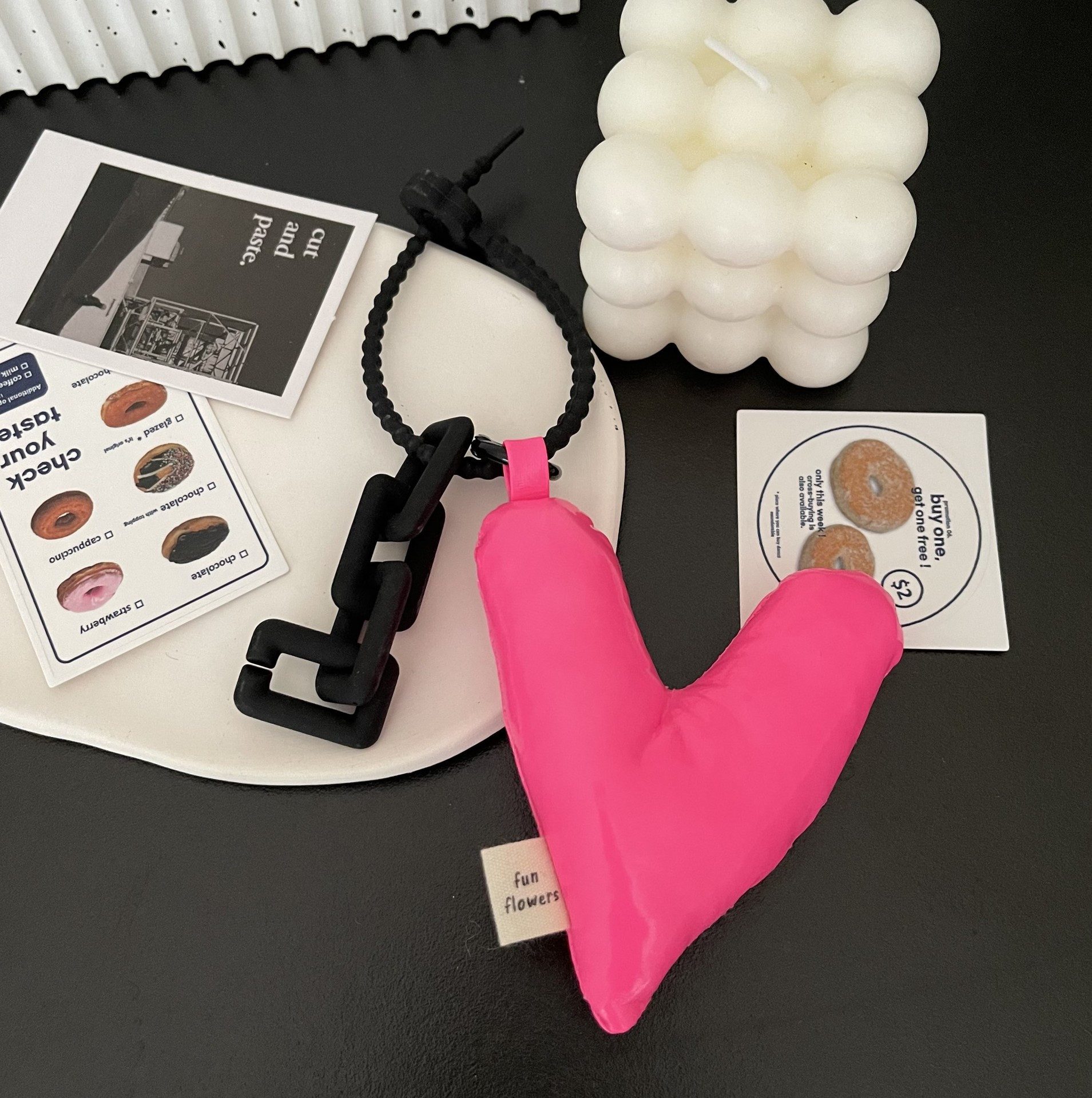 Ein herzförmiger Rucksack Handtasche Charme, mit einem Gewicht von 20g, die drei Zubehörteile, die unabhängig voneinander entfernt werden können, können nach Belieben abgestimmt werden, ein gepolstertes Baumwolle Liebe Herz Zubehör, ein Acryl Lanyard Zubehör, ein Gummi-Lanyard, original Nischendesign, zeigen Persönlichkeit, semi-handgemachte Verarbeitungstechnik, kann für Gepäck, alle Arten von Rucksäcken, Handtaschen und Schlüssel Charme Zubehör, insgesamt fünf Farben zur Auswahl verwendet werden.