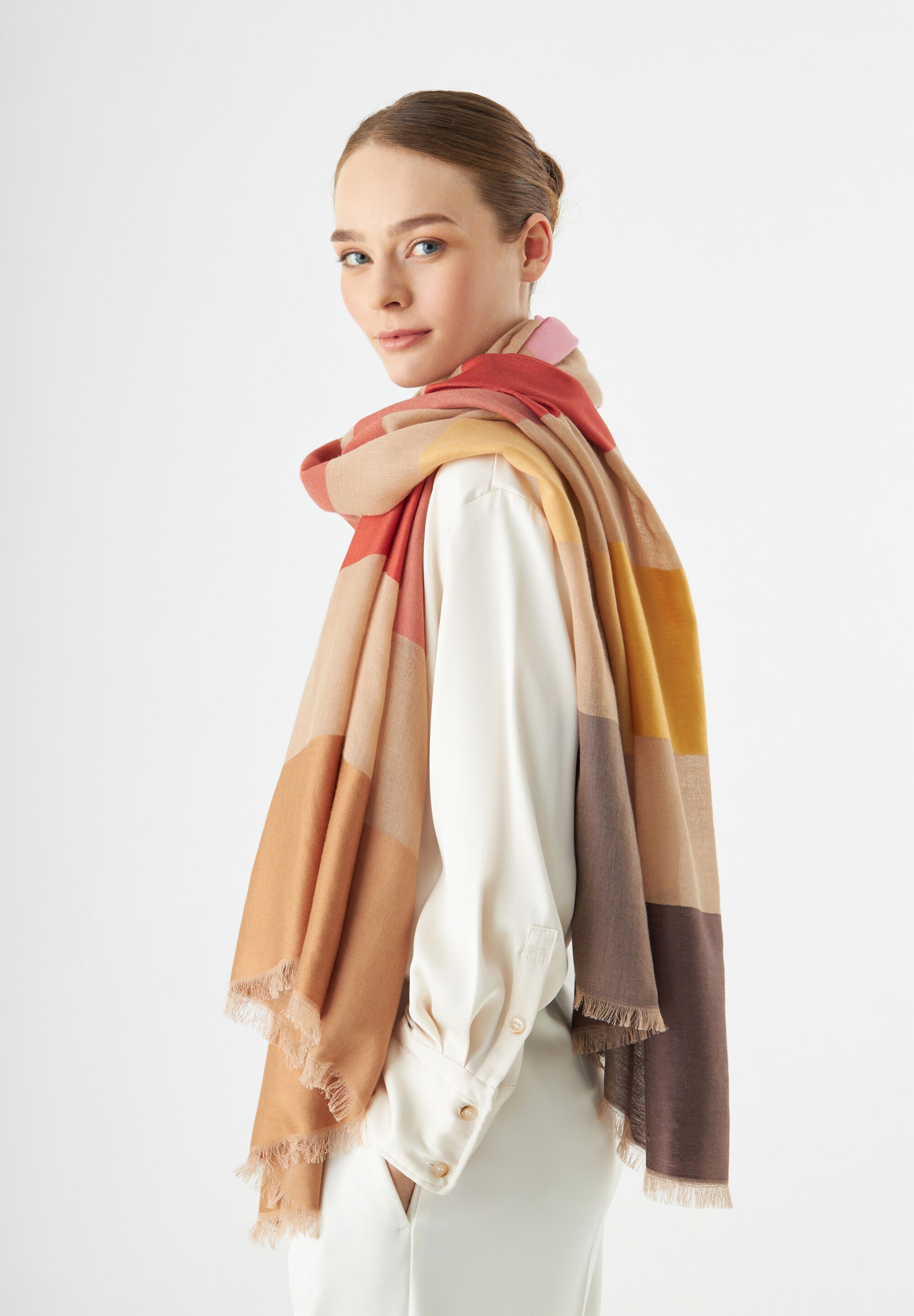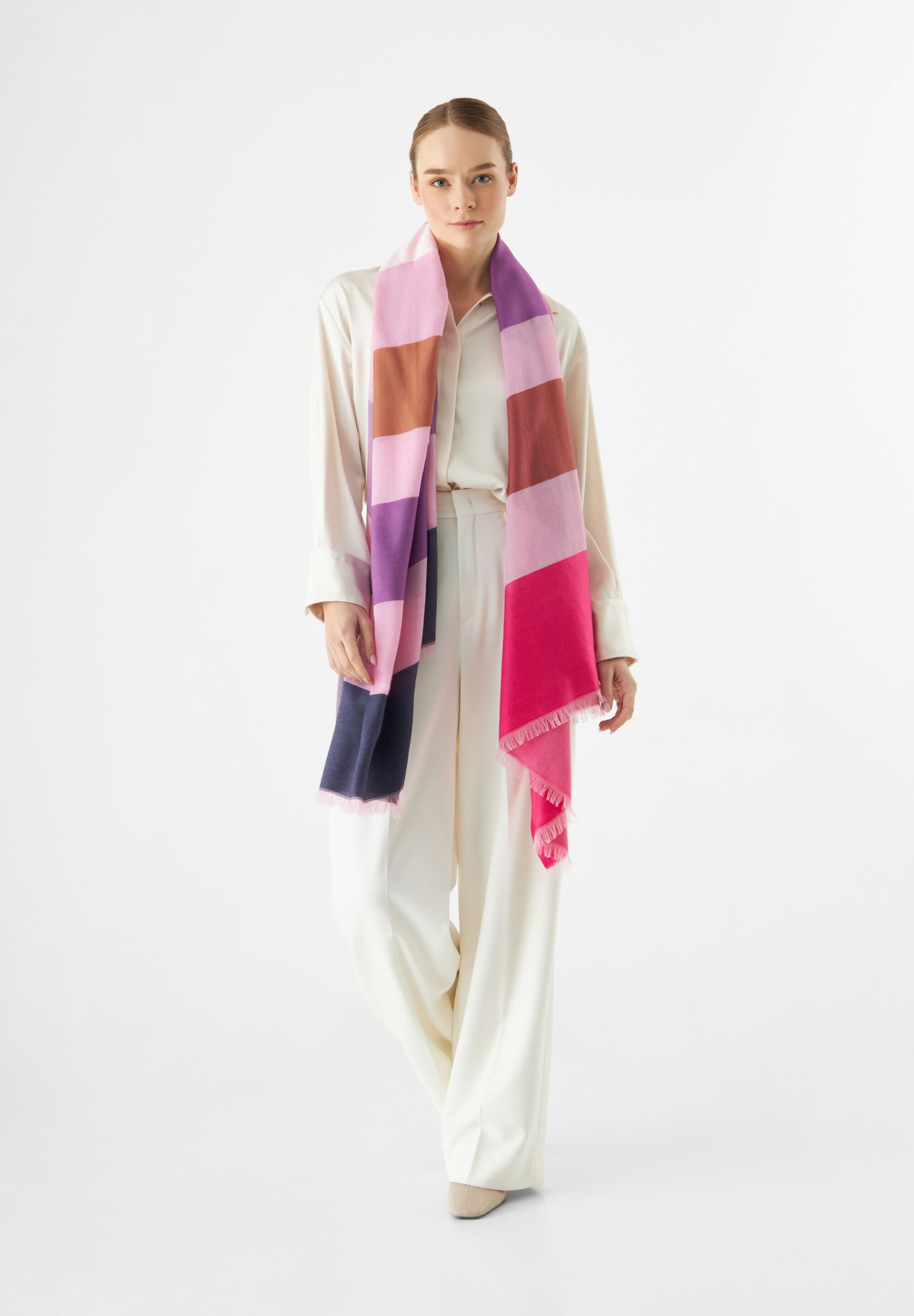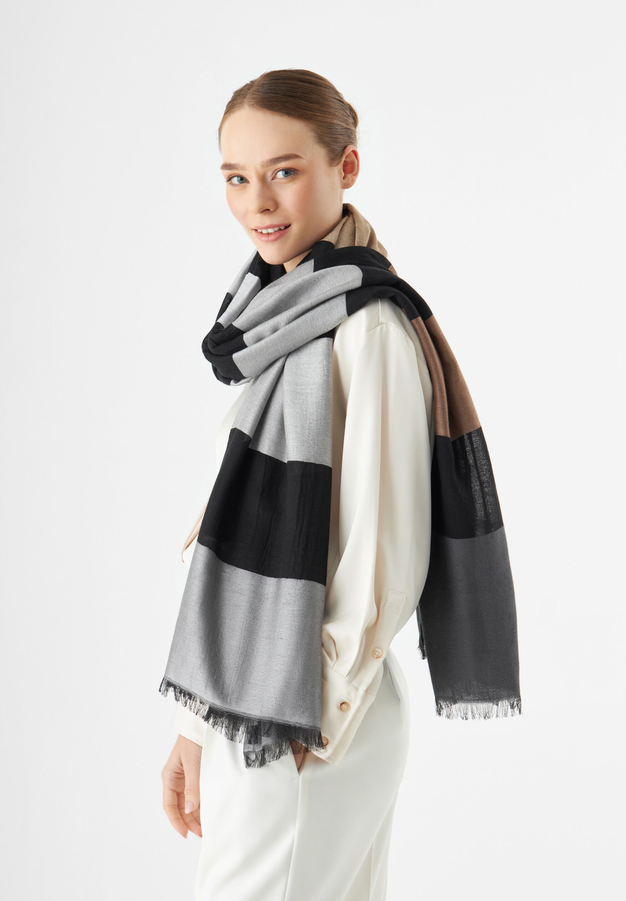 Ein XL-Schal mit Blockstreifen gehört zu den It-Accessoires des Winters. So wie dieser edel-lässige Jacquard-Schal, der dich cool und classy durch die kalte Jahreszeit begleitet. Für die Herstellung des gewebten Schals wurde eine angenehm warme und softe Mischung aus Baumwolle, Wolle und Polyacryl verwendet. Die macht ihn so weich und wärmend. Stylen kannst du den fein glänzenden Streifenschal nach Lust und Laune. Uns gefällt er als Eyecatcher zu Jäcken und Mänteln mehrfach um den Hals gewickelt besonders gut.