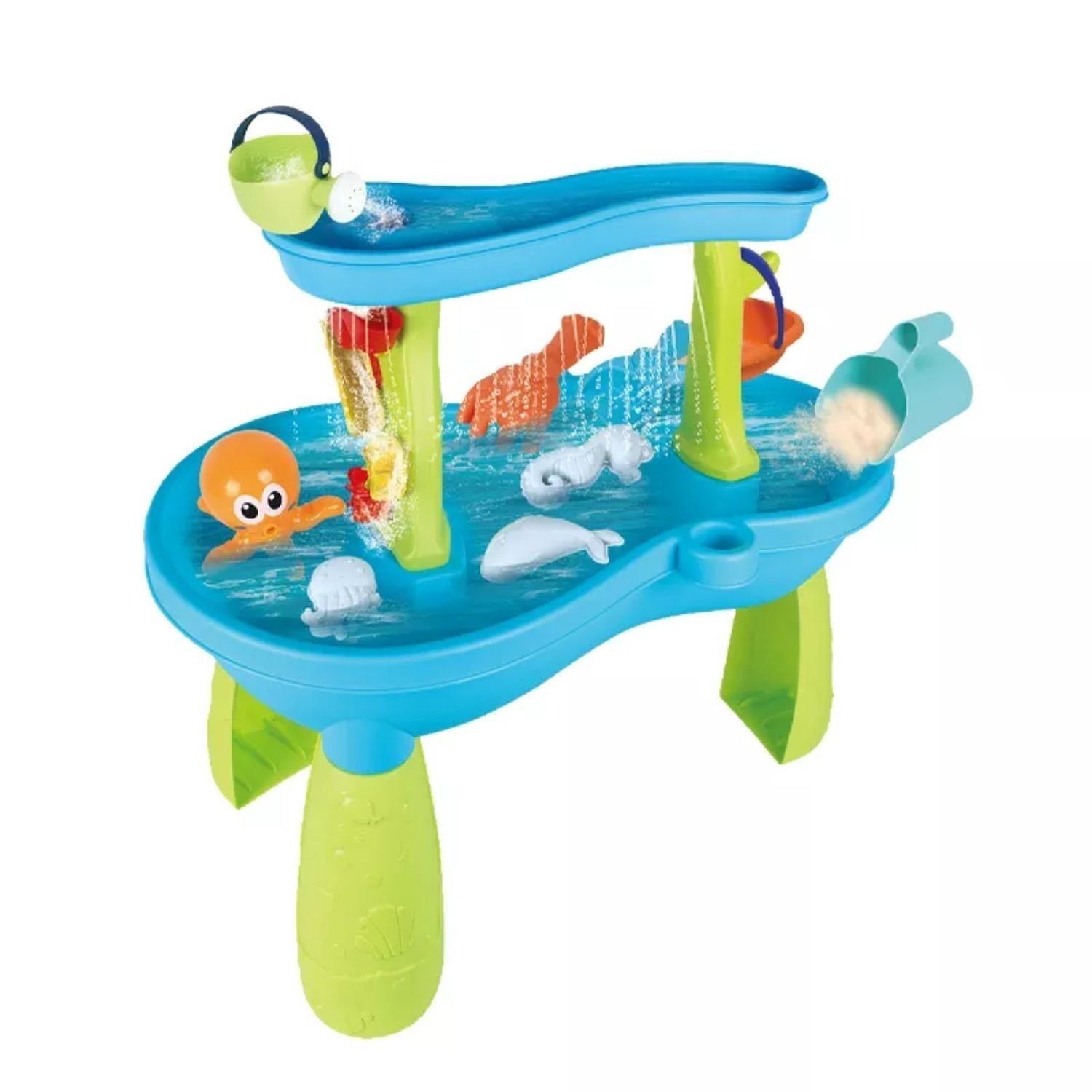 Dank seines Designs können mehrere Kinder gleichzeitig am Wassertisch planschen und spielen. Der Wassertisch für Kinder sorgt für stundenlange Unterhaltung.
