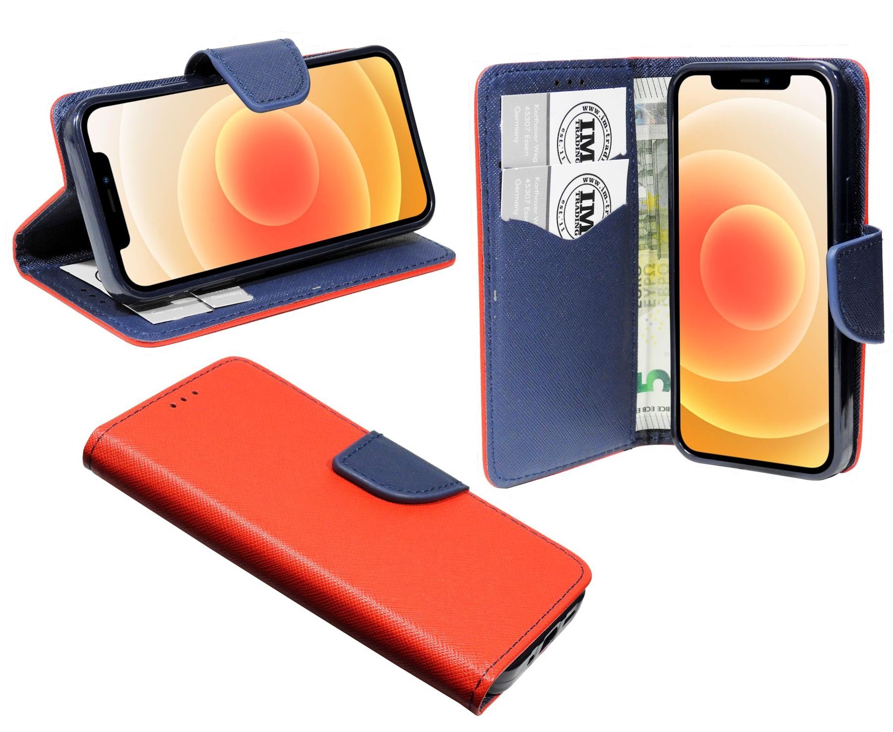 1x Bookstyle-Tasche für das iPhone 12 Mini in Rot-Blau