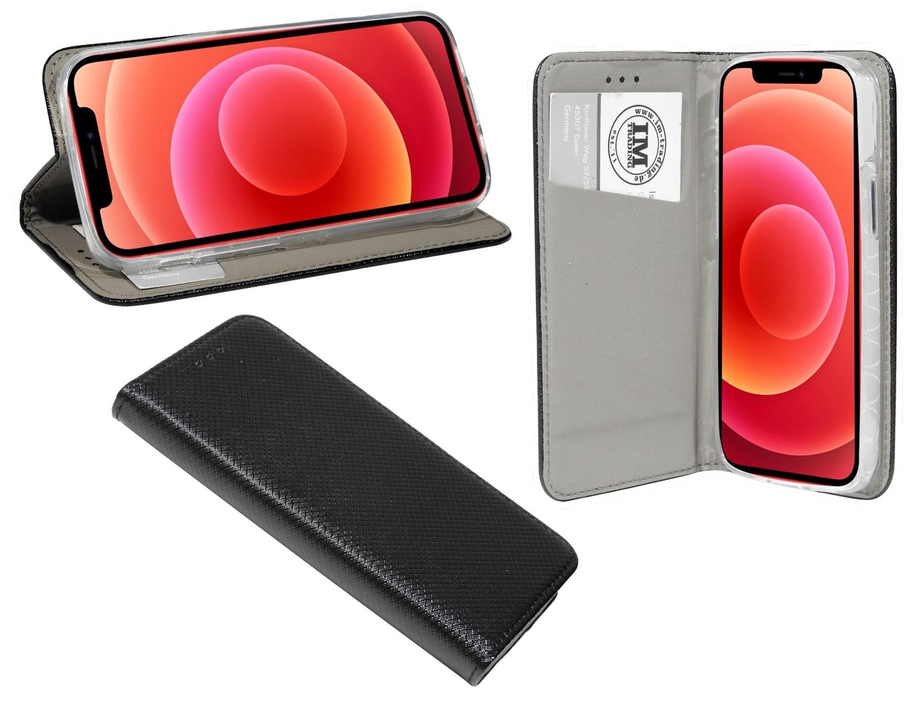 Elegante Buch-Tasche für das iPhone 12 Pro mit EC-/ Kreditkarten Fächer und integrierter Standfunktion