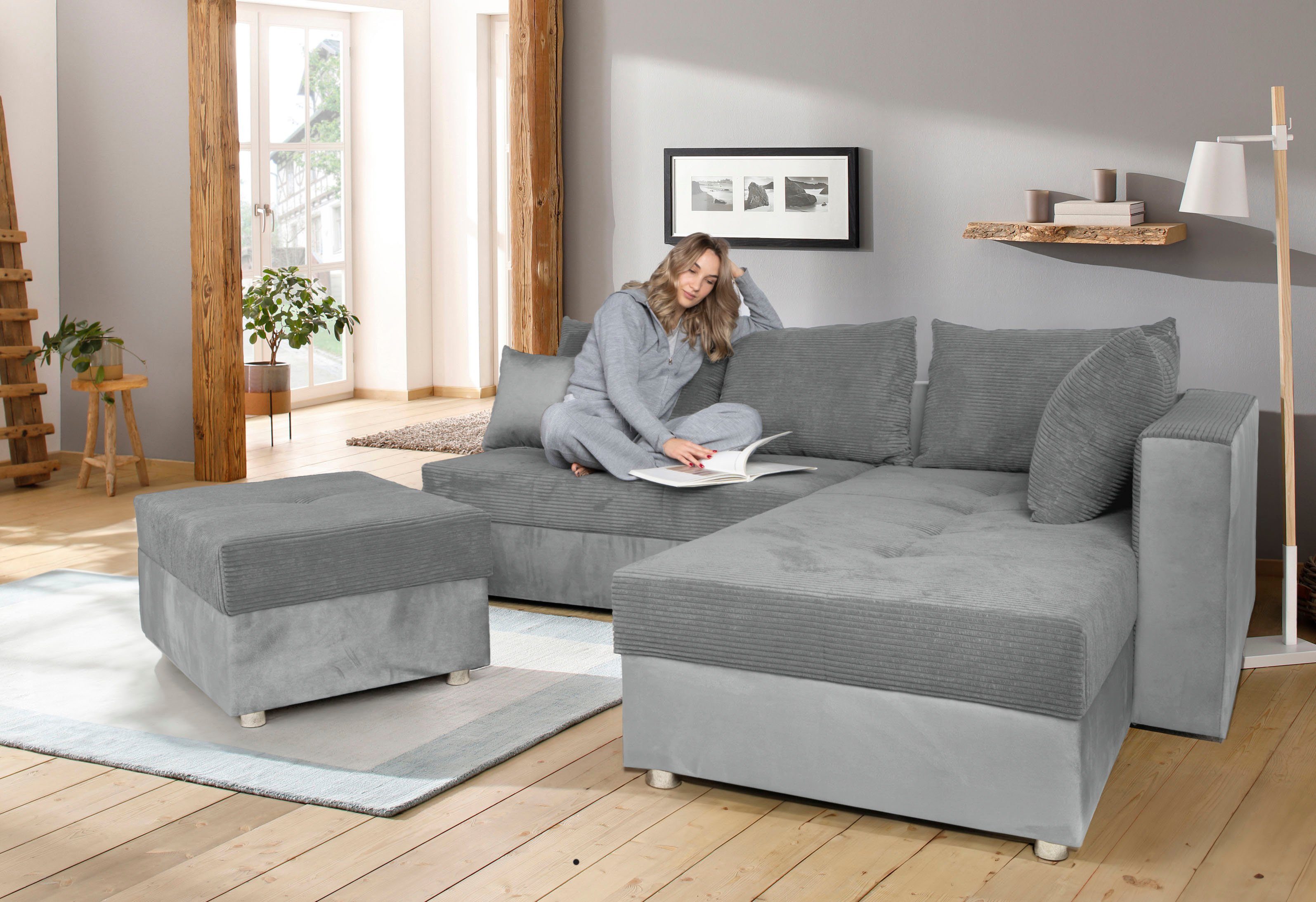 Eine elastische und formbeständige Sitzoberfläche bekommst du mit diesem Ecksofa »Italia L-Form« von COLLECTION AB, das mit langlebiger Federkern-Polsterung ausgestattet ist. Darüber hinaus verfügt das Möbelstück über einen Bettkasten, sodass es sowohl als gemütliche Sitzgelegenheit für den Tag als auch als Gästebett genutzt werden kann. Ein weiterer Vorteil ist das passende Rückenkissen, das dekorativ und zugleich komfortabel ist. Der Bezug aus Luxus-Microfaser macht die Oberfläche sehr weich und angenehm im Griff und punktet mit seiner strapazierfähigen Eigenschaft.