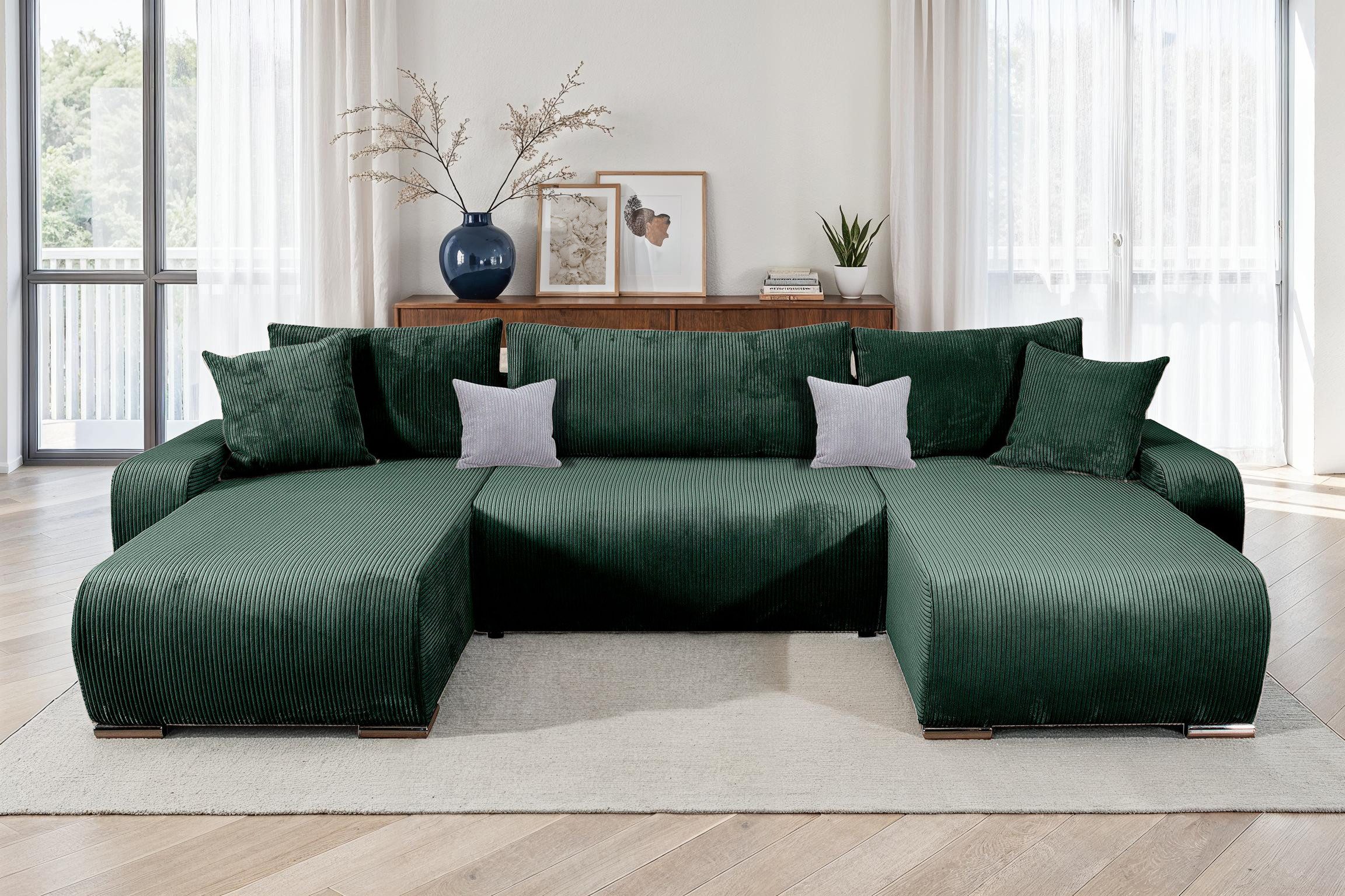 Diese Wohnlandschaft »Paola U-Form« von COLLECTION AB punktet dank Federkern-Polsterung mit hoher Belastbarkeit und Langlebigkeit. Außerdem verfügt das Möbelstück über einen Bettkasten, sodass es sowohl als gemütliche Sitzgelegenheit für den Tag als auch als Gästebett genutzt werden kann. Was dir auch zu Gute kommt, sind die passenden Zierkissen, die nicht nur schöne Deko-Element sind, sondern auch für noch mehr Komfort sorgen. Die Füße wurden aus Kunststoff gefertigt und sind daher temperatur- und formbeständig.