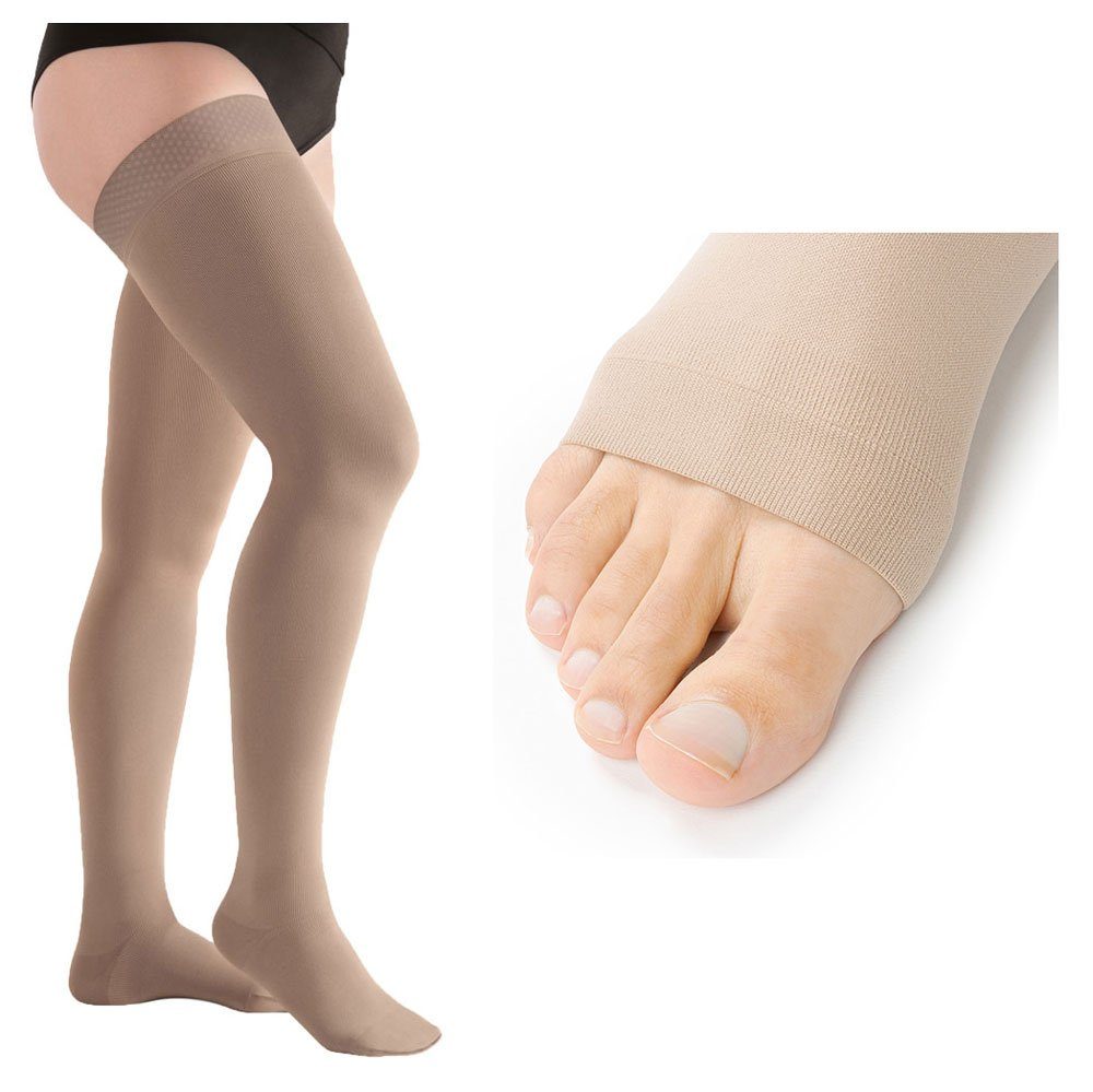 Die Compressana Free Kompressions Schenkelstrümpfe lassen sich einfach an- und ausziehen und bieten maximale Bewegungsfreiheit.