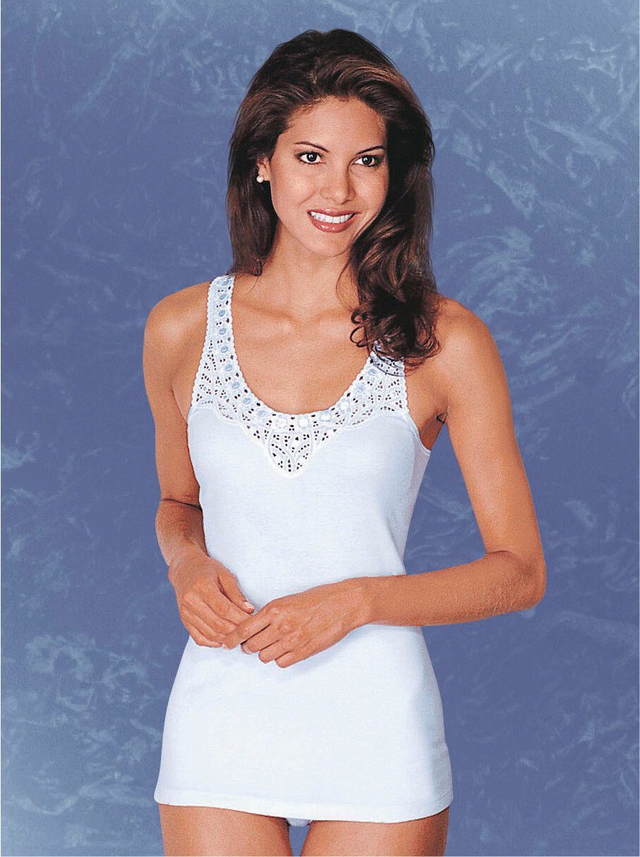 Das Unterhemd ist schön lang. Die Spitze ist angenehm. Es sind 2 in der Packung.