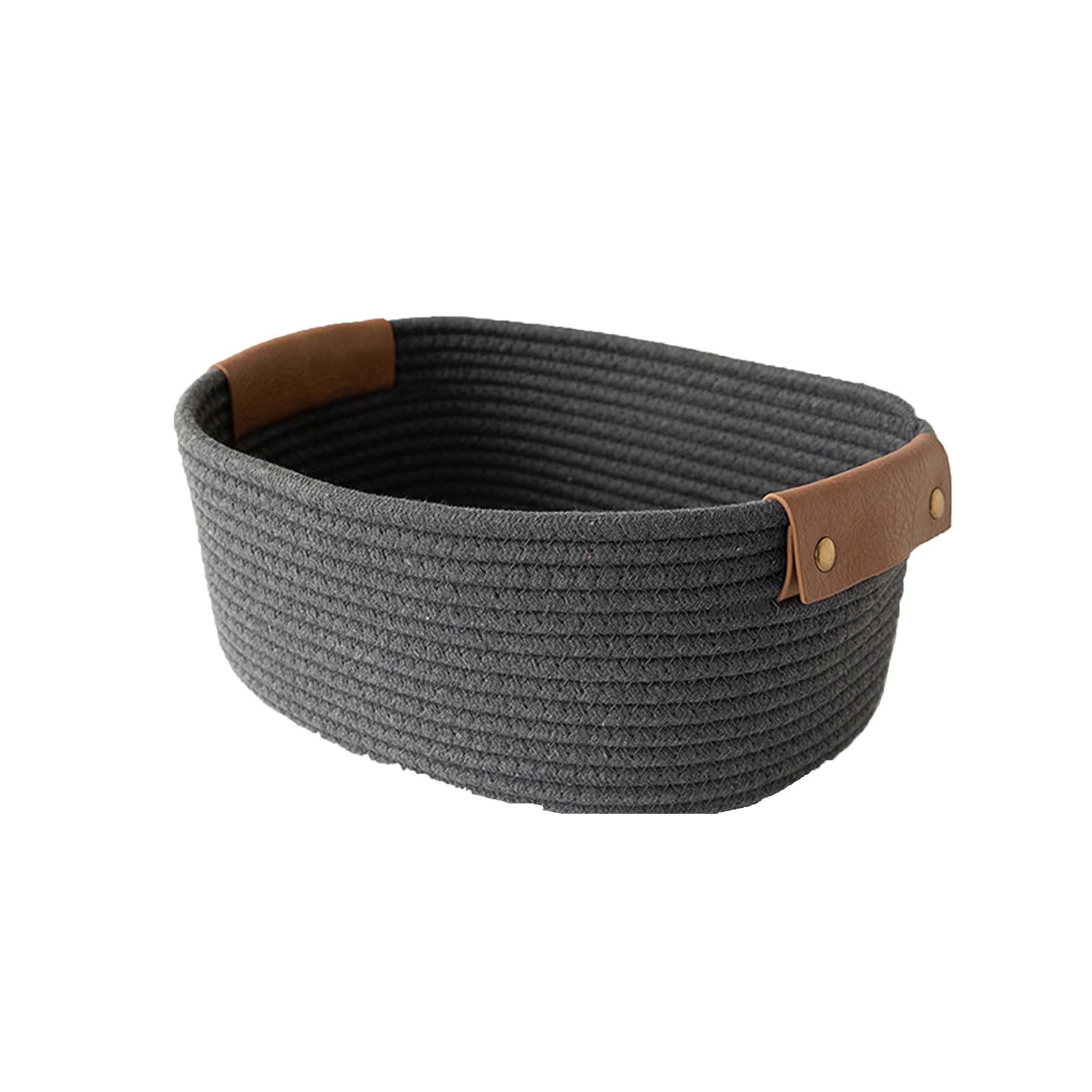 Rechteckiger W schekorb Wei aus strapazierf higem Baumwollseil gefertigt. Die beiden Seitengriffe sind mit braunem Leder umwickelt. Er ist leicht zu tragen und verleiht Ihrem Wohnraum einen Hauch von Stil.