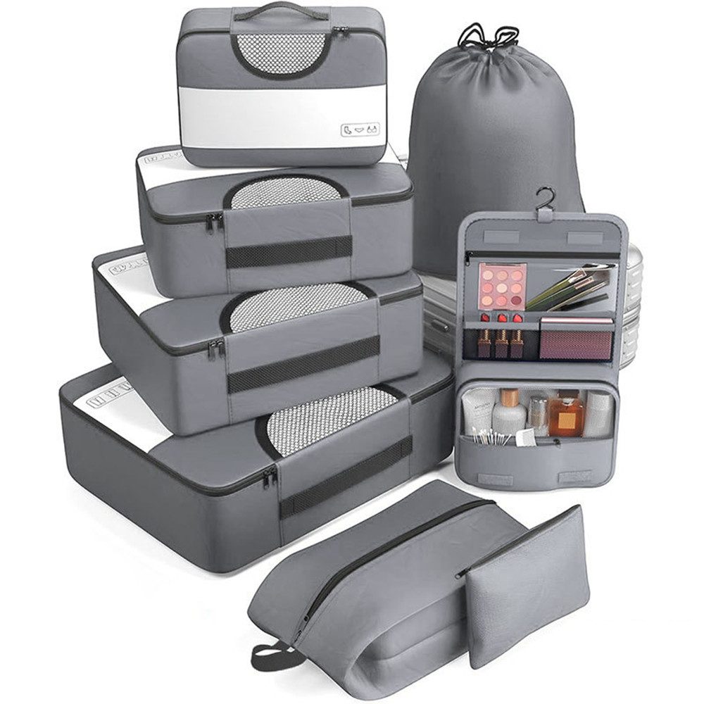 Das COONOOR Packwürfel Set (8-tlg.) ist die perfekte Lösung für alle, die Wert auf Ordnung und Komfort beim Reisen legen. Mit verschiedenen Würfelgrößen – von XL für Jacken und Pullover über mittlere und kleine Taschen für T-Shirts, Unterwäsche oder Handtücher – bietet dieses Set genug Flexibilität, um jedes Gepäckstück optimal zu organisieren. Zusätzlich sind eine praktische Schuhtasche, eine Kosmetiktasche und ein Zubehörbeutel enthalten.