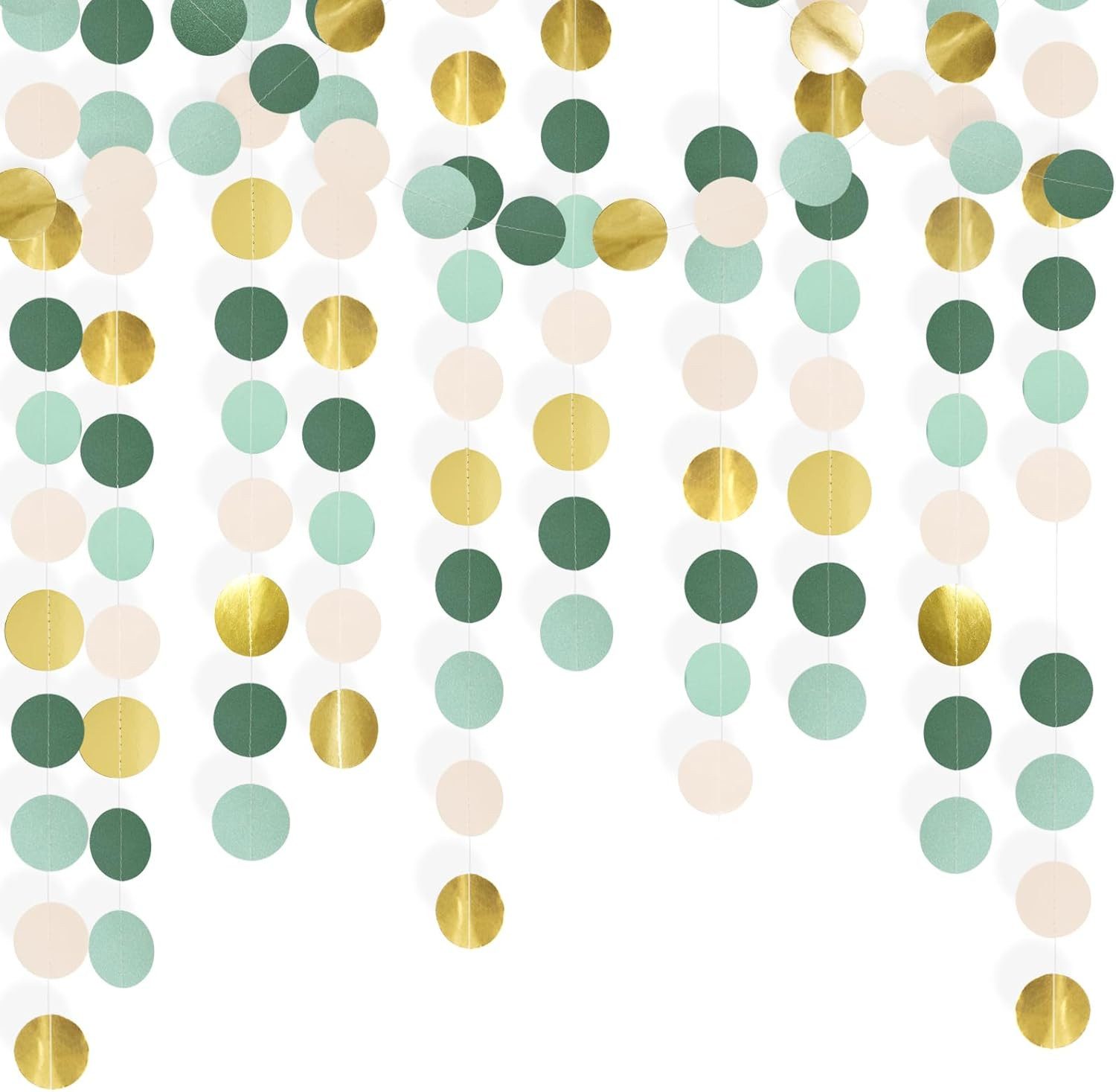 Unsere runden Papiergirlanden bestehen aus hochwertigem reflektierendem Goldkarton, der einen doppelseitigen Reflexionseffekt bietet und langanhaltend glänzt. Stark und haltbar, ideal für wiederholte Nutzung und eine nachhaltige sowie stilvolle Wahl für Ihre Feierlichkeiten.