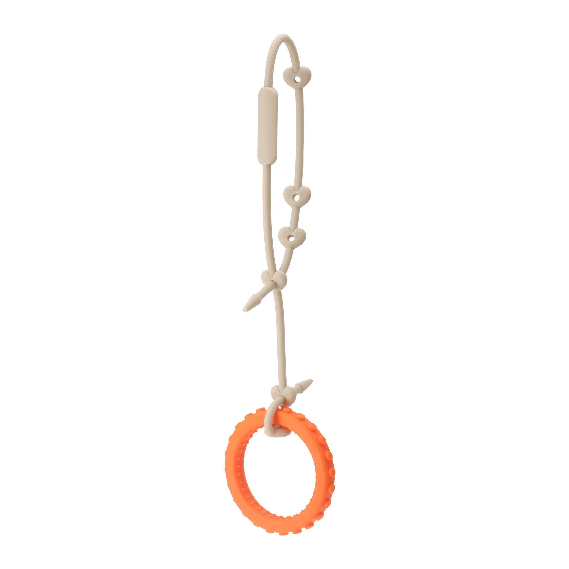 Vielseitiges Design: Der Beißring ist mit einem Ringverschluss ausgestattet, der in mehreren Positionen verstellbar ist, um die Розмір des Gegenstands anzupassen.