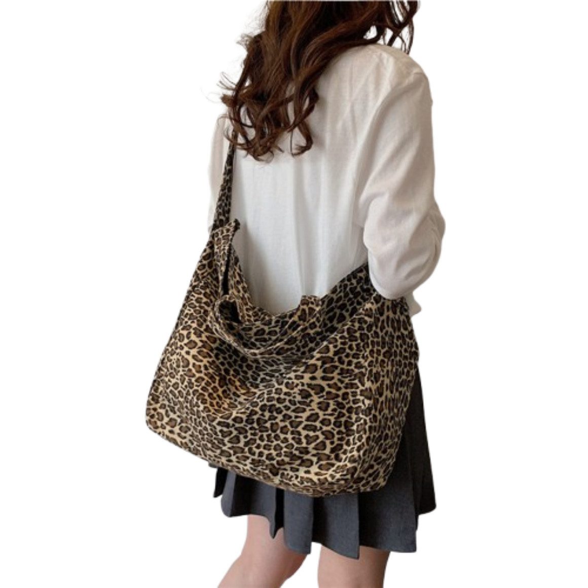 Material: Die Tasche mit Leopardendruck besteht aus hochwertigem Canvas, das bequem ist, weich und hat eine gute Verschleißfestigkeit. Das Innenmaterial ist Polyester, mit einer mäßigen Weichheit. Die genähte Handtasche ist weich und faltbar, leicht zu tragen und kann als einzelne Umhängetasche/Obdachlose Person/Lebensmitteltasche/Off-Road Tasche/Einkaufstasche/Rucksack/Damenportemonnaie verwendet werden