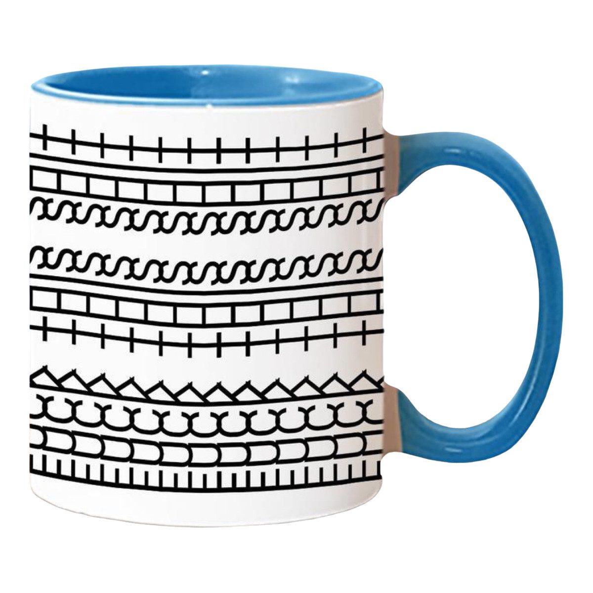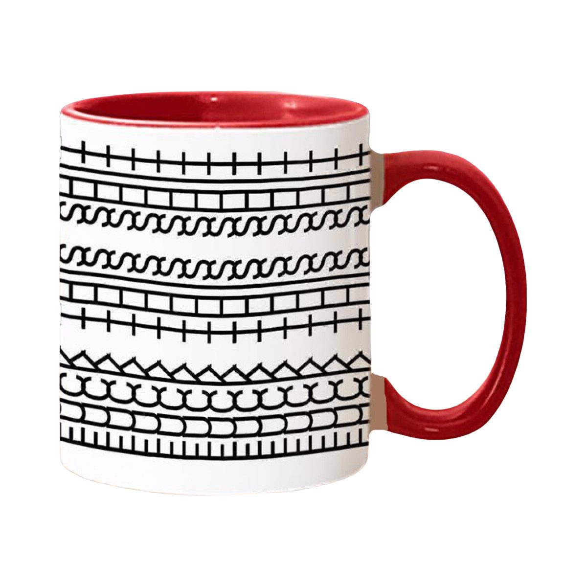 Diese lustige Kaffeetasse ist mit einer verspielten und subtilen Nachricht gestaltet, die Ihrem täglichen Kaffeeritual eine humorvolle Note verleiht. Das Design ist auf beiden Seiten bedruckt und zeigt ein auffälliges geometrisches Muster mit modernen, tribal-inspirierten Motiven in Schwarz, das die Tasse zu einem echten Blickfang auf Ihrem Schreibtisch oder Küchentresen macht.