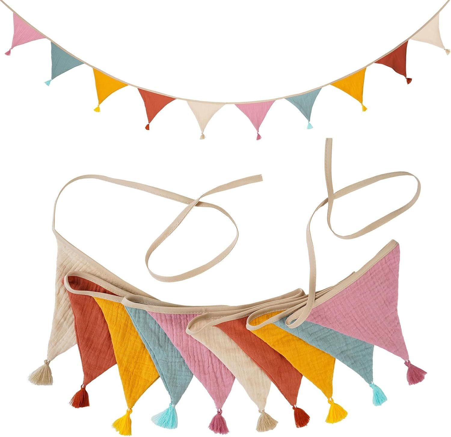 Wiederverwendbare WimpelDie Wimpelkette aus Musselin Baumwolle ist strapazierfähig und pflegeleicht, was sie ideal für den täglichen Gebrauch im Kinderzimmer macht. Sie kann problemlos in der Waschmaschine gereinigt werden und behält dabei ihre Farben und Formen.