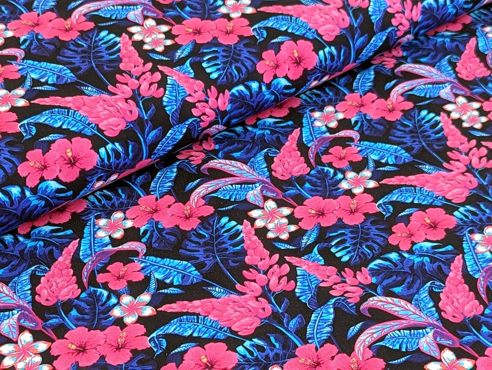 Corileo Stoff Baumwolljersey I Want Summer Blumen KATINOH Blau / Pink