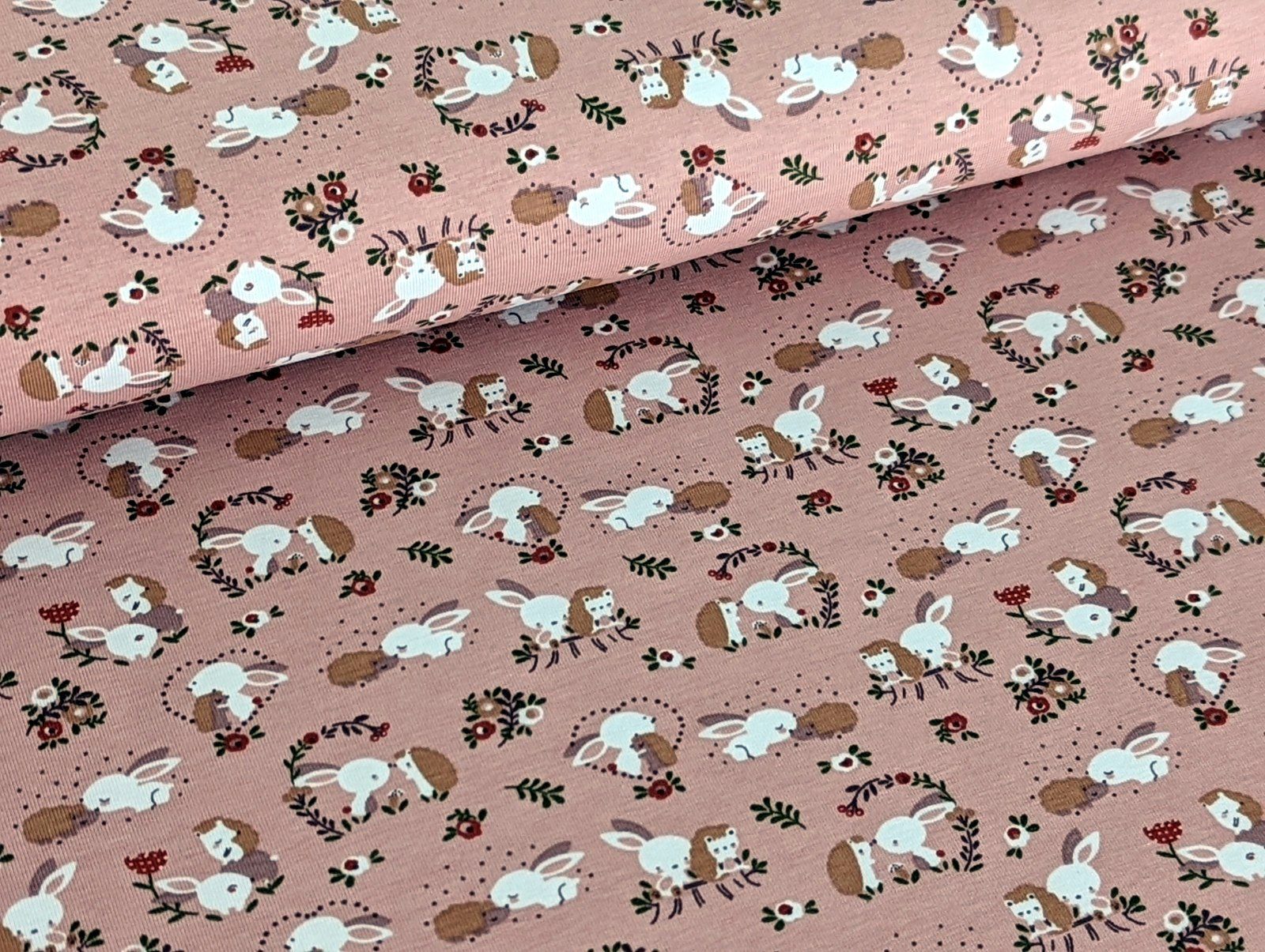 Corileo Stoff Baumwolljersey Sweet Hase mit Igel auf (Hellrosa) Meterware