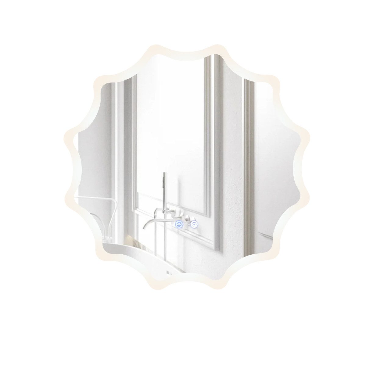 Dieser LED-Badezimmerspiegel mit Welle-Design ist die perfekte Lösung für Ihre Badezimmerbeleuchtungsbedürfnisse! Dieser HD-Silberspiegel mit einer Розмір von 60 x 60 cm eignet sich perfekt zum Aufhängen über Ihrem Waschtisch oder Waschbecken zum Stylen und Schminken.