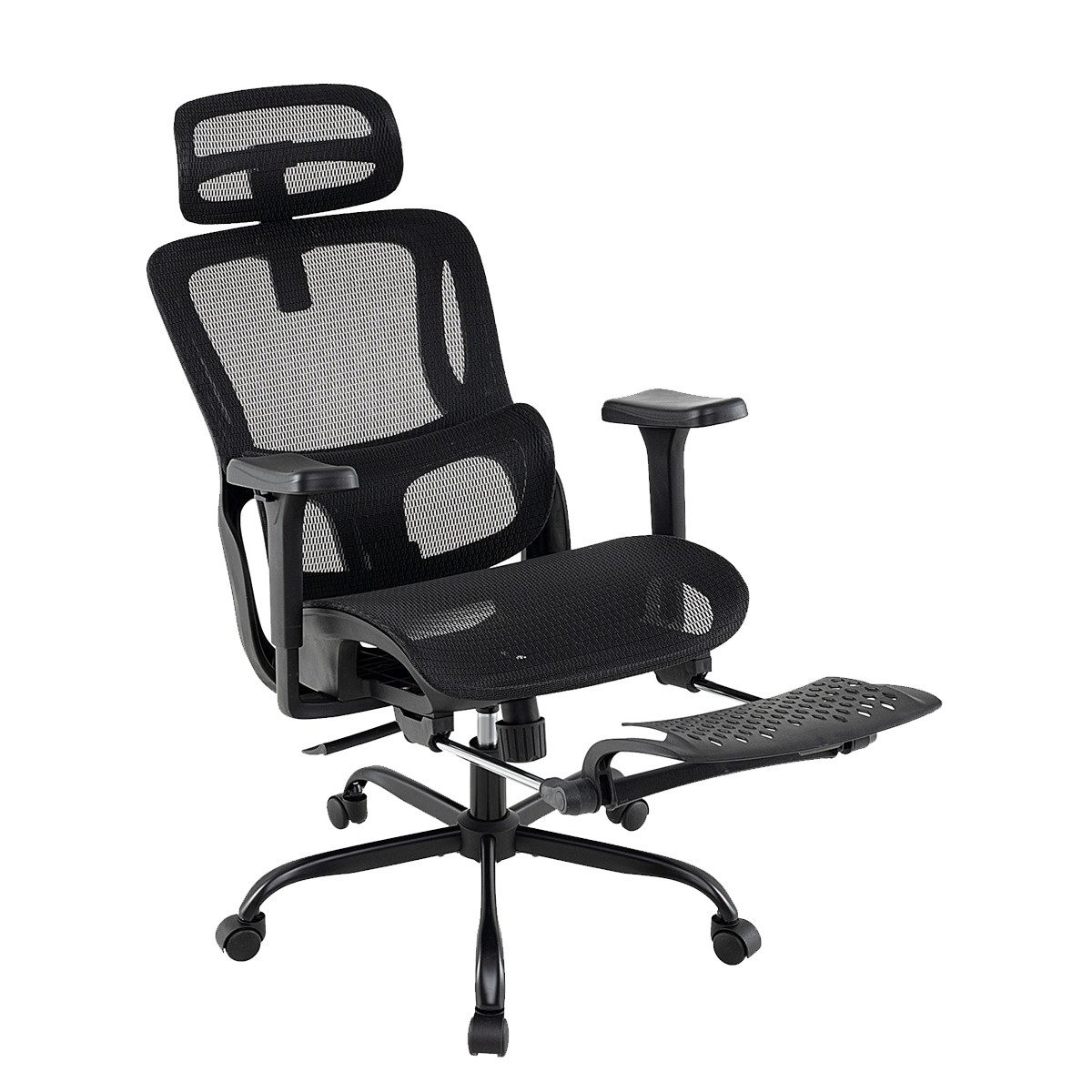 Finden Sie die perfekte Unterstützung für Nacken und Kopf mit der verstellbaren Kopfstütze, die eine 45° Drehung und eine vertikale Verstellung von 9 cm bietet. Verriegeln Sie die neigbare Rückenlehne in den Winkeln 90°, 115° und 135°, um bequem zu arbeiten oder zu entspannen, während die verstellbare Lendenstütze und die ausziehbare Fußstütze die ergonomische Unterstützung verbessern. Mit einem Gaszylinder sorgt der Computertischstuhl für eine sanfte Höhenverstellung. Unterstützt von einer 5-Klauen-Metallbasis kann der Bürostuhl bis zu 150 kg tragen. Der Stuhl ist aus atmungsaktivem, reißfestem Mesh-Gewebe gefertigt und eignet sich hervorragend für Arbeiten, Gaming, Studium oder Entspannung zu Hause.