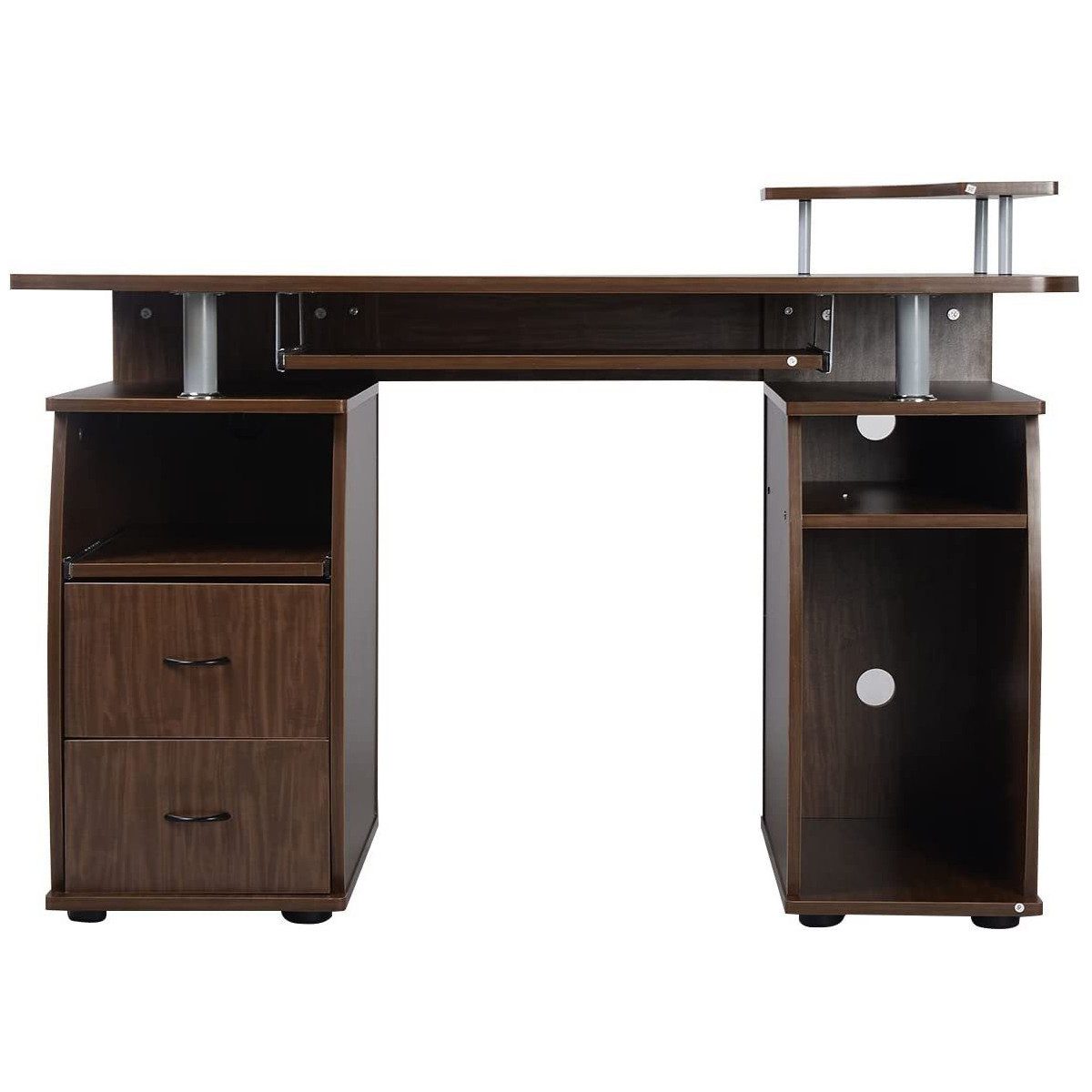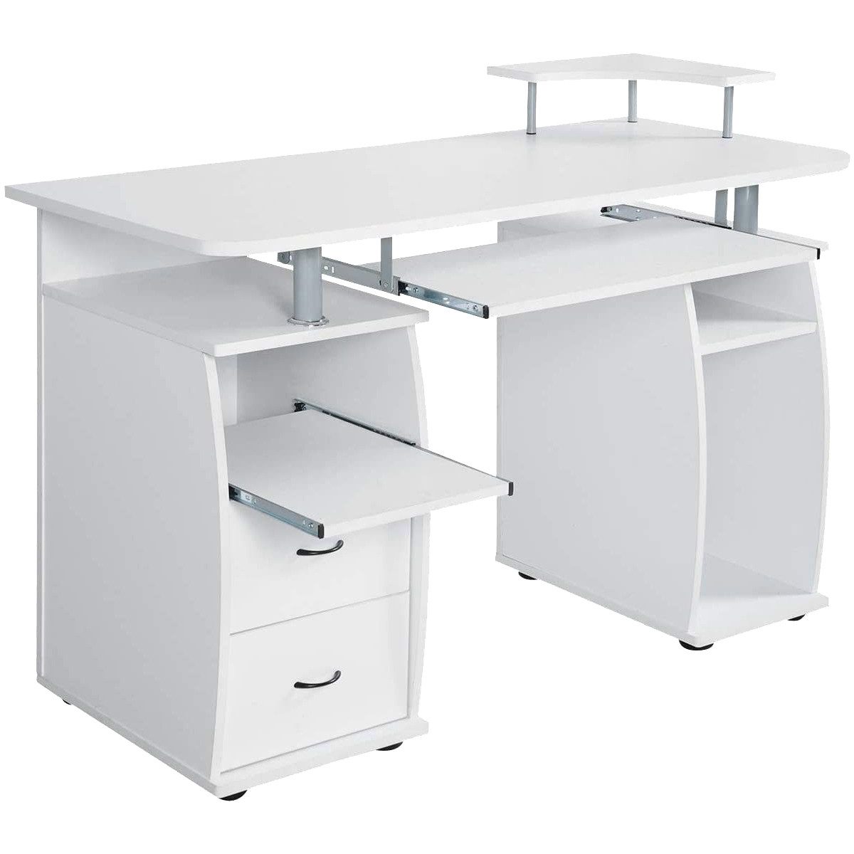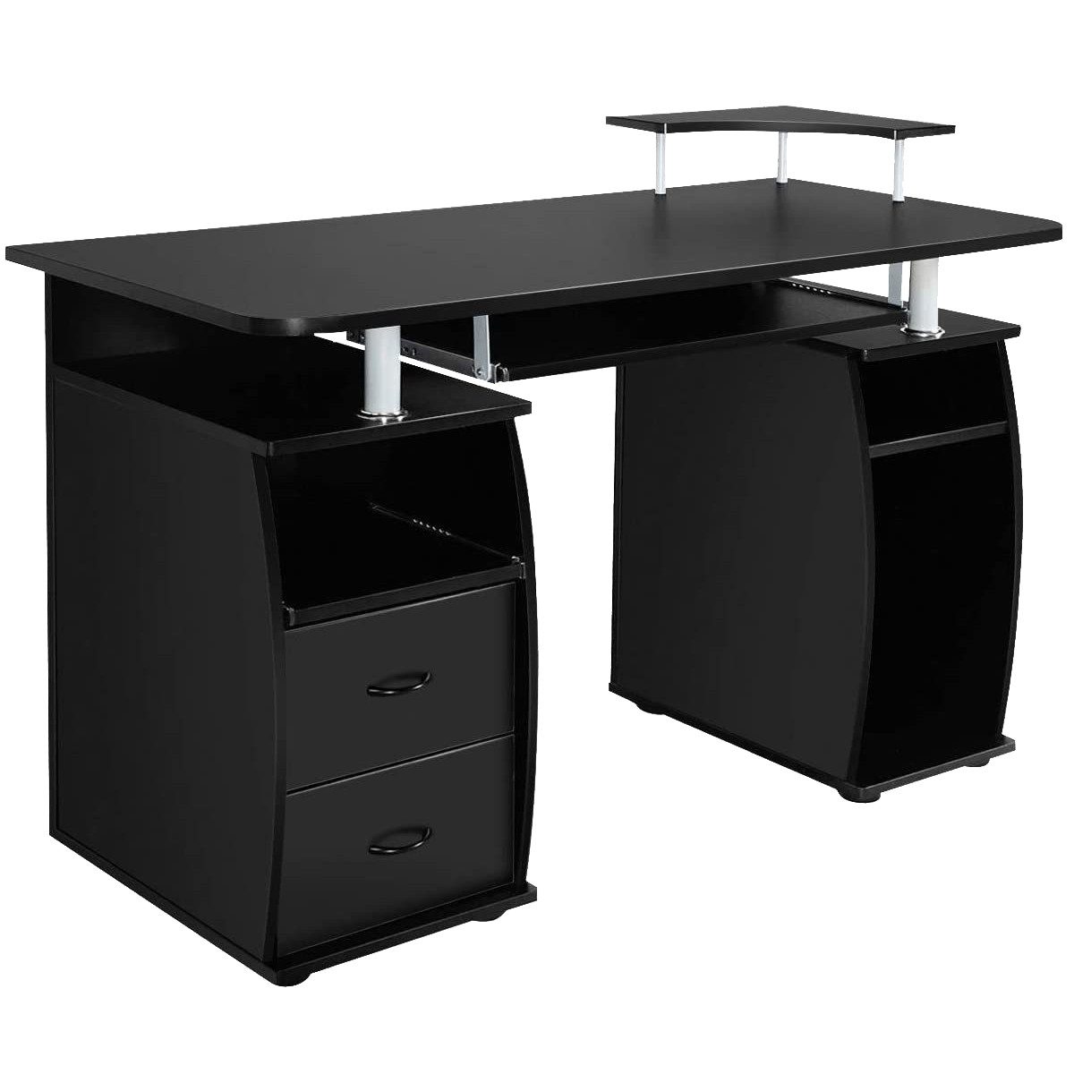 Der PC-Schreibtisch bietet Platz für Rechner, Monitor,Drucker sowie Schreibutensilien und ist zudem mit einem separatem Tastaturauszug ausgestattet. Der ideale Computertisch für Ihren Arbeitsplatz zu Haus oder im Büro! Der Schreibtisch wird aus qualitativ hochwertigem MDF hergestellt, mit einer laminierten Oberfläche in Schwarz-,Weiss- und Walnussoptik.