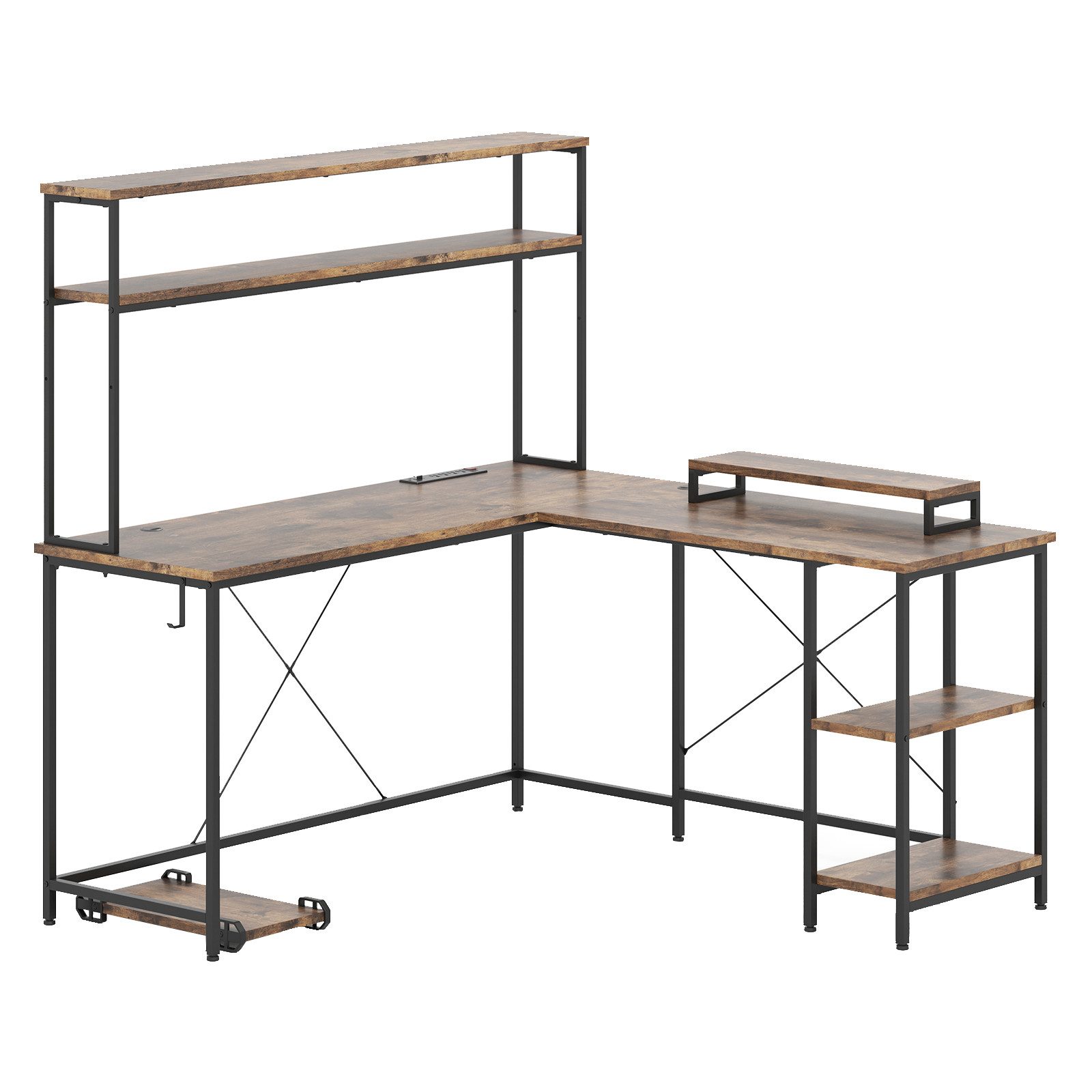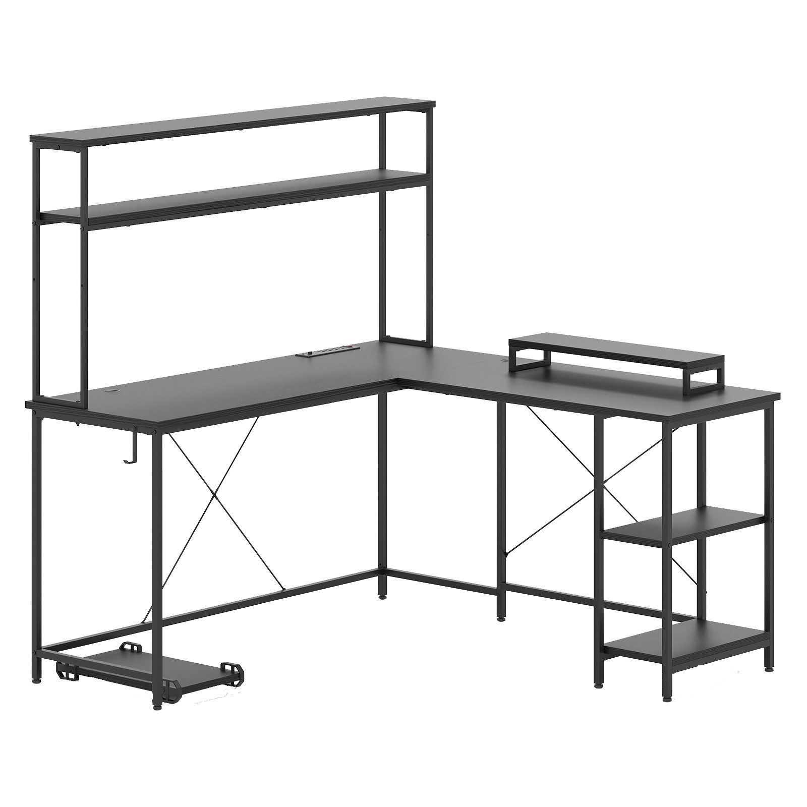 Ausgestattet mit einem integrierten LED-Streifen verbessert dieser Heimbüro-Schreibtisch Ihre Gaming-Erfahrung oder Arbeitsumgebung mit maßgeschneiderter Umgebungsbeleuchtung. Darüber hinaus bietet die integrierte Ladestation flexible Stromquellen für Ihre Gaming-Ausrüstung. Das obere Regal, die geräumigen Regale, der Kopfhörerhaken und der Computerhost-Ständer sind für eine organisierte Platzierung der Ausrüstung konzipiert. Der Computer-Arbeitsplatz wird von einem heavy-duty Metallrahmen und verstellbaren Fußpolstern unterstützt, um eine zuverlässige Struktur zu gewährleisten.
