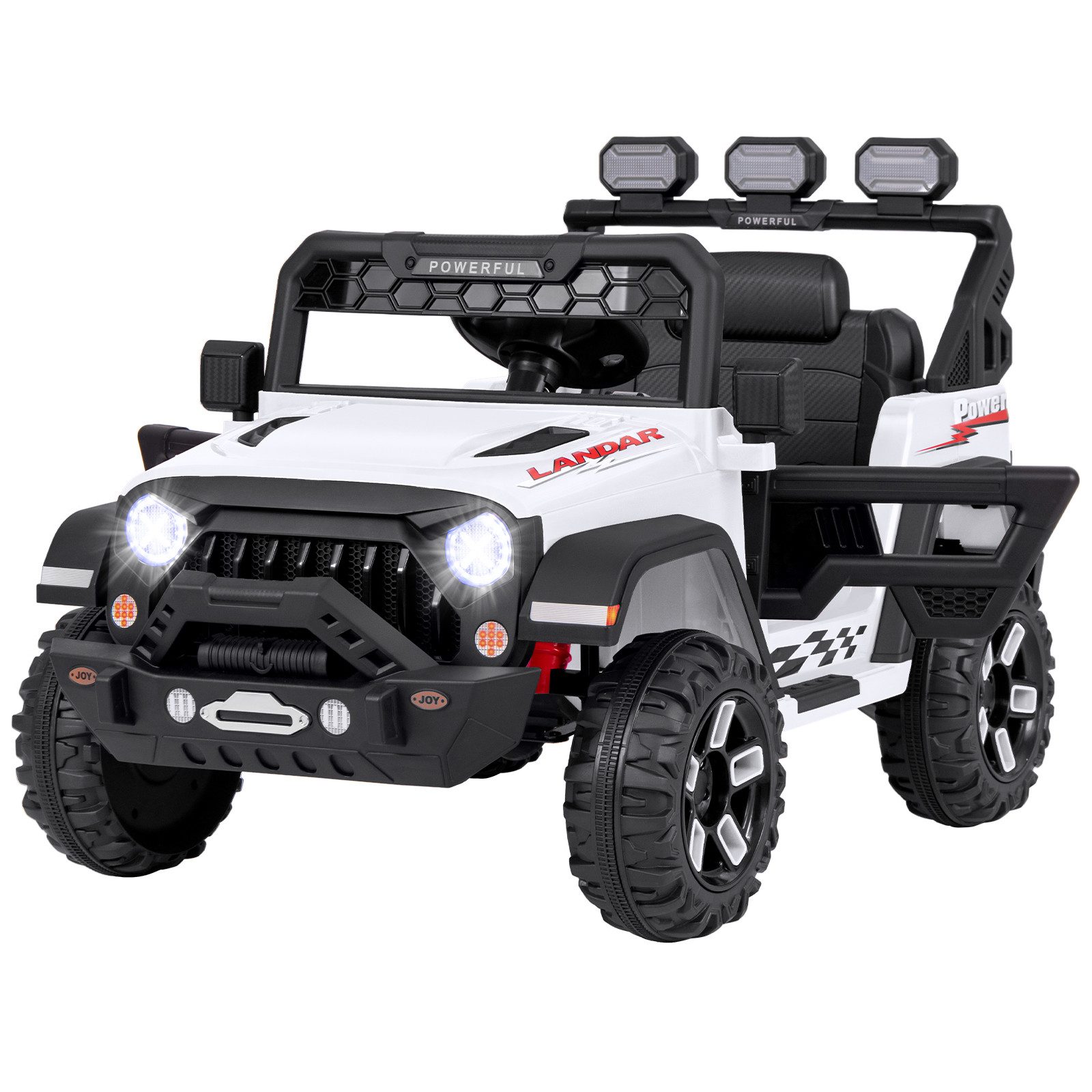 Das 12V Kinderfahrzeug gewährleistet ein unterhaltsames und sicheres Fahrerlebnis mit seinen zwei 12V Motoren, Ein-Knopf-Zündung, sanftem Start und langsamen Stopp. Dieses Elektroauto bietet Unterhaltungsmerkmale wie Sprachhinweise, kabellose Konnektivität, Lautstärkeregelung, einen USB-Anschluss, Mikrofoneingang, Musik- und Lichtsteuerung. Das Kinderfahrzeug erlaubt zwei Steuerungsmethoden. Ausgestattet mit robuster Federung und Geländereifen kann es mühelos jede Oberfläche durchqueren. Es ist mit realistischen Details wie LED-Lichtern, funktionalen Spiegeln, verriegelbaren Türen und einer Stromanzeige verziert.
