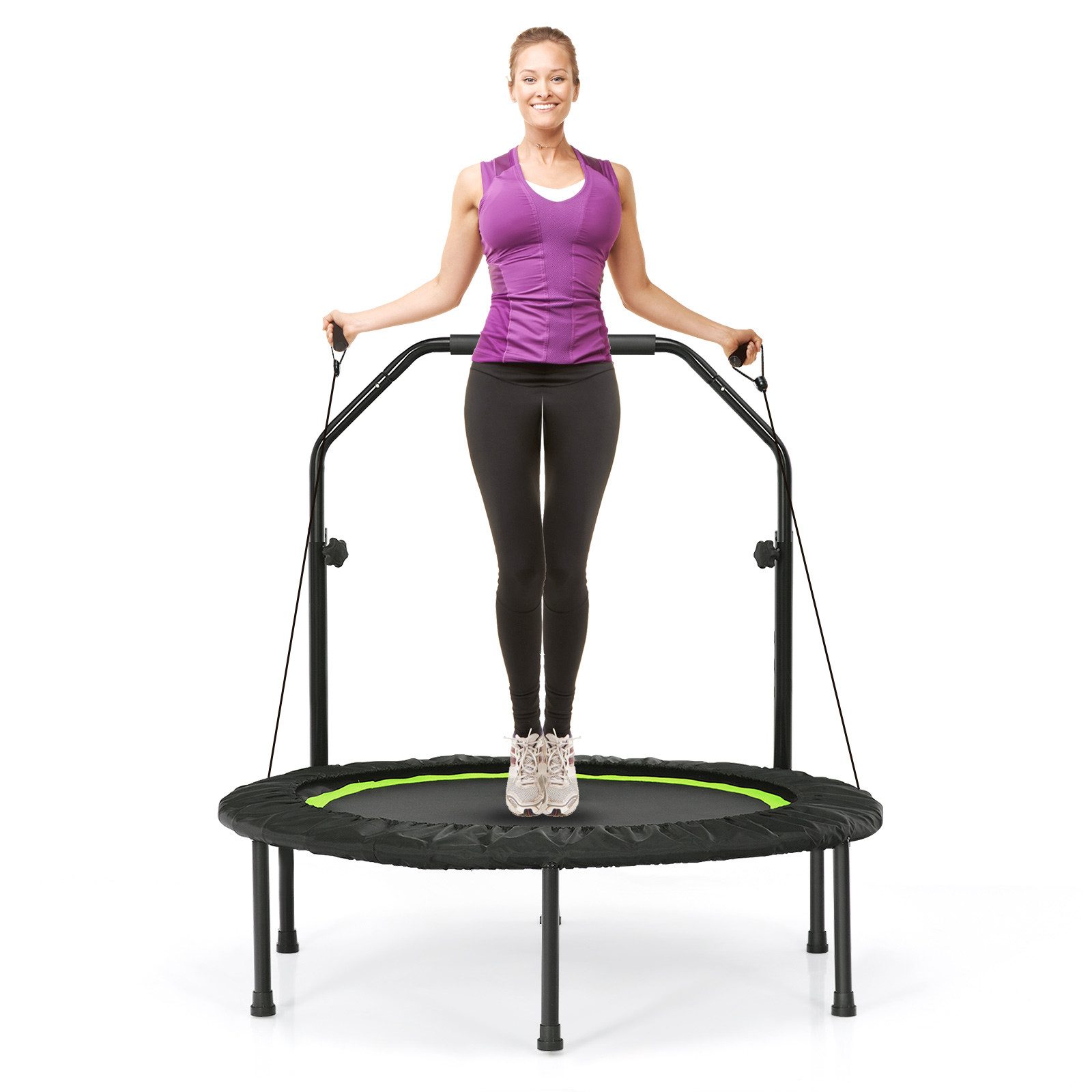Suchen Sie noch nach einem Fitness-Trampolin für Ihre Familie? Unser Klapptrampolin mit 2 Widerstandsbändern ist eine tolle Wahl.