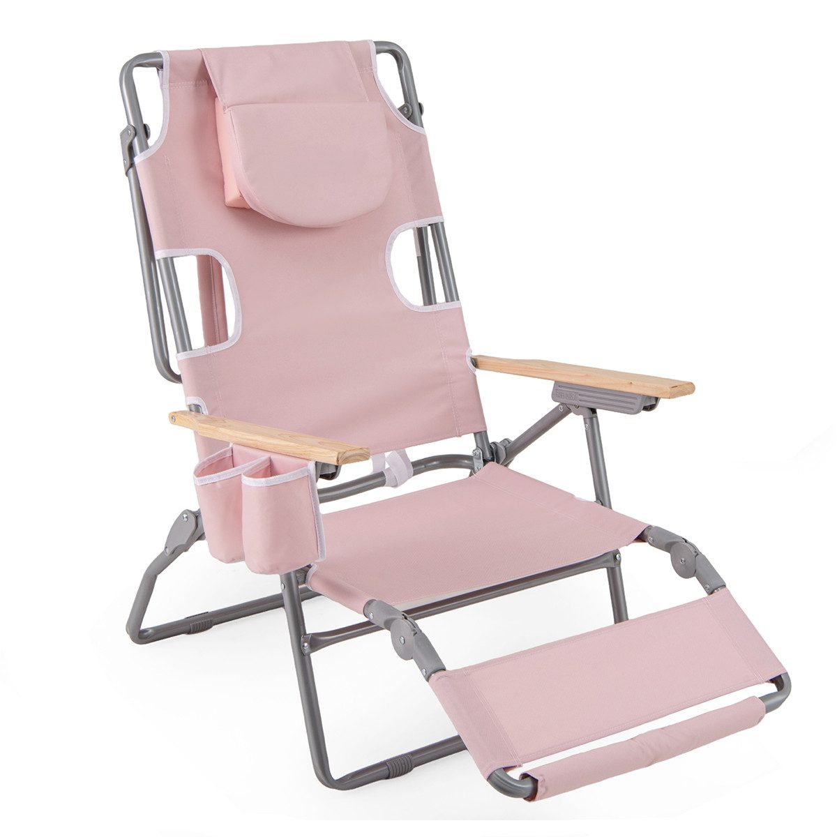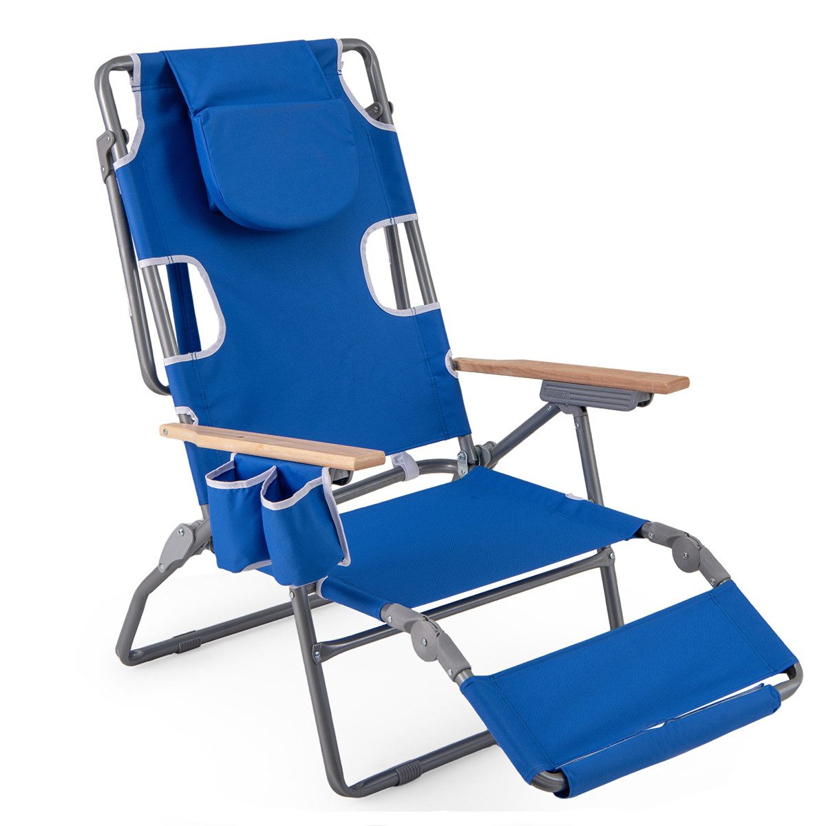 Verbessern Sie Ihre Entspannung im Freien mit unserem vielseitigen 3-in-1-Strandstuhl, der maximalen Komfort in jeder Position bietet. Ob Sie vollständig flach Sonnenbaden, leicht zurückgelehnt entspannen oder aufrecht sitzen möchten, dieser Stuhl lässt sich dank seiner 4 verstellbaren Rückenlehnenpositionen und 2 verstellbaren Fußstützen einfach auf Ihre bevorzugte Einstellung anpassen. Einzigartig in unserem Design ermöglichen es die Gesichts- und Armöffnungen, bequem mit dem Gesicht nach unten zu liegen und die Wärme der Sonne ohne Unbehagen zu genießen. Unser zuverlässiger Oxford-Strandstuhl ist der perfekte Begleiter für Strandtage, Campingausflüge oder entspanntes Liegen in Ihrem Garten!