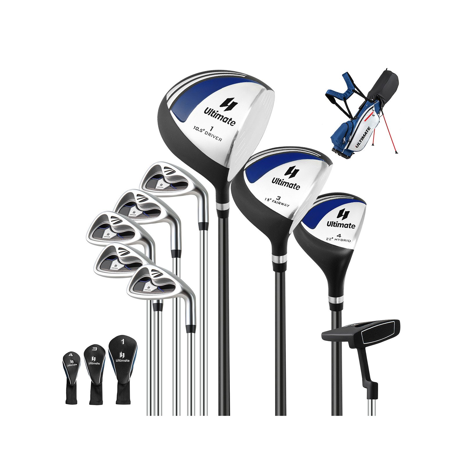 Dieses Set eignet sich nicht nur für Anfänger, sondern besonders auch für fortgeschrittene Spieler. Es umfasst einen Metall-Driver, ein 3# Fairway-Holz, einen 4# Hybrid, 6#-9# Eisen, einen Pitching Wedge, einen Putter und eine leichte Tasche. Damit werden all Ihre Bedürfnisse erfüllt. Mit dem Driver können Sie sich sogar kleine Fehler erlauben. Die Eisen sind zudem an beiden Enden gewichtet, um den Schwerpunkt zu optimieren. Natürlich können Sie auch den Pitching Wedge für Hindernisse verwenden. Um den Transport zu erleichtern, wird eine praktische Tragetasche mitgeliefert.