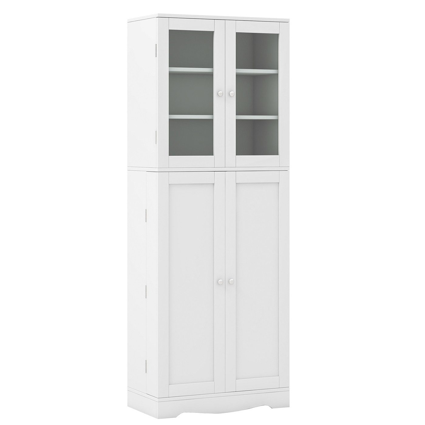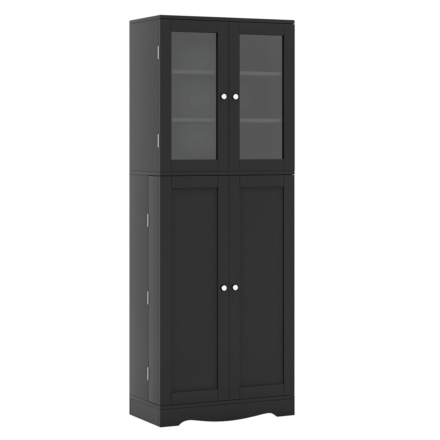 Der Küchenschrank ist eine perfekte Mischung aus Funktionalität, Stil und Komfort. Mit einem oberen Schrank, 7 Ablageböden und 4 Türregalen im unteren Schrank bietet der Küchenvorratsschrank mehrere Aufbewahrungsoptionen für eine Vielzahl von Gegenständen. Im Gegensatz zu anderen Schränken verfügt unserer über Türregale mit Schutzgittern, um ein versehentliches Herunterfallen zu vermeiden. Mit dem mitgelieferten Anti-Umkippen-Set können Sie den Schrank sicher an der Wand befestigen, was stabiler ist als andere.
