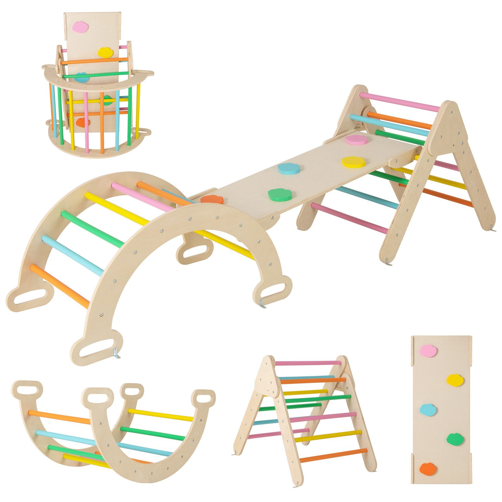 Unser dreieckiges 5-in-1-Kletterset besteht aus einer Kletterleiter, einem Bogen und einer Rampe, die auf verschiedene Arten kombiniert werden können und für noch mehr Spielspaß sorgen. Insbesondere kann der Kletterbogen auch als Wippe zum Ausruhen genutzt werden, und die Rampe mit doppelseitigem Design kann zum Klettern genutzt werden, um unterschiedlichen Bedürfnissen gerecht zu werden. Darüber hinaus sind die Kletterspielzeuge aus ausgewähltem Buchenholz gefertigt, das sorgfältig poliert und sicher lackiert ist, was für große Sicherheit sorgt. Dank der lustigen Baby-Kletterspielzeuge können Kleinkinder das Gleichgewicht verbessern, grobmotorische Fähigkeiten entwickeln, die Hand-Augen-Koordination fördern und die Fantasie anregen, wodurch sie gesund und glücklich aufwachsen!